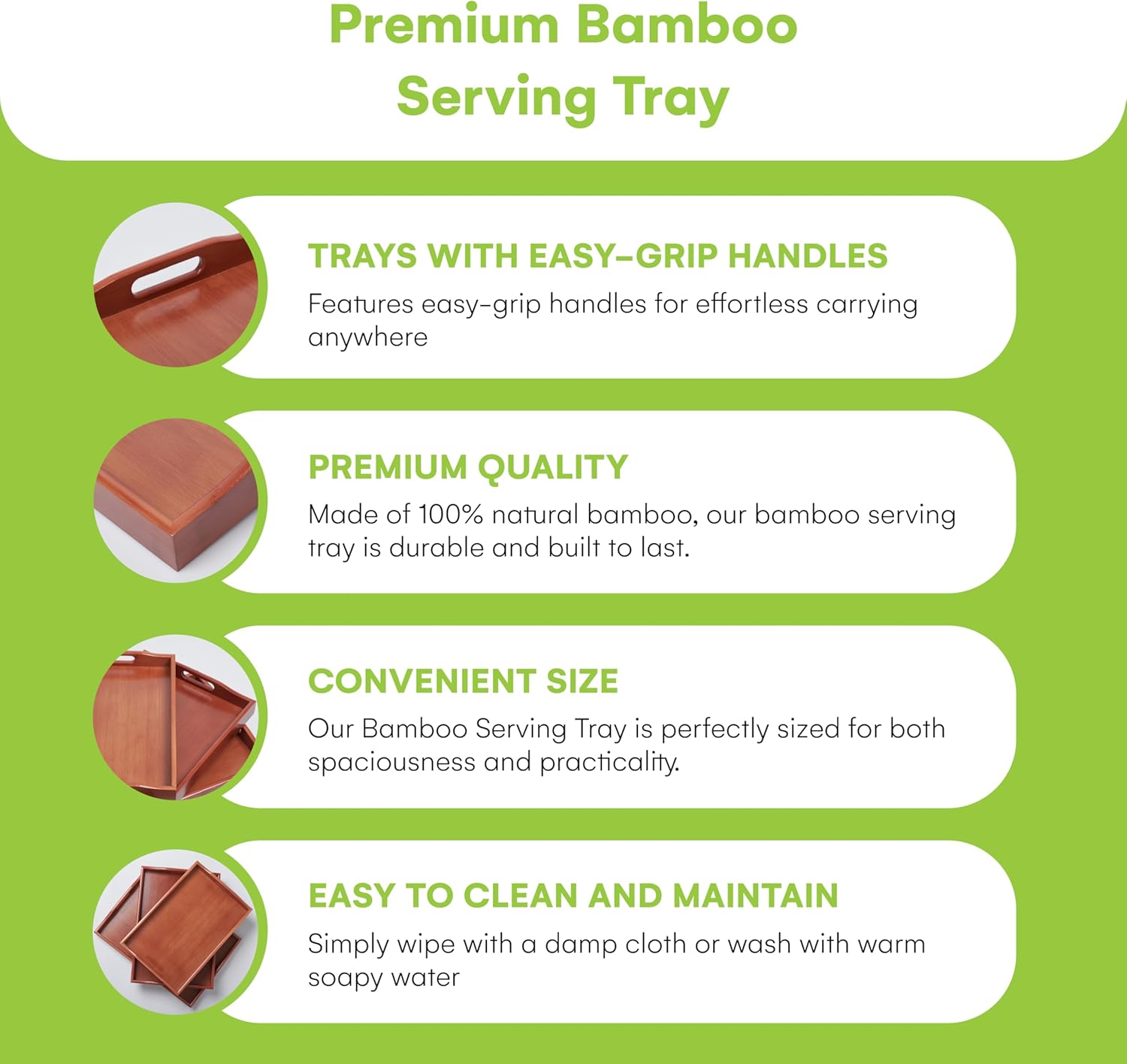- VERSATILE SIZES: This 3-piece wooden tray set includes various sizes, ideal as serving trays for food, drinks, or as stylish organizers for your kitchen, living room, or dining area.