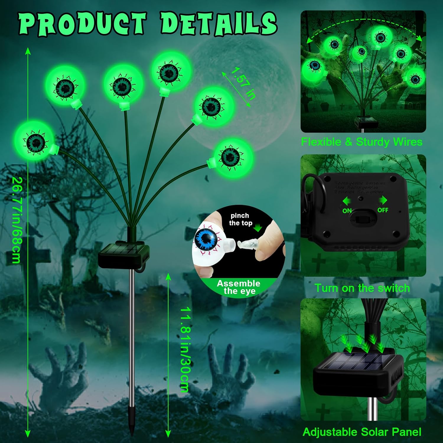 - 【SCARY HALLOWEEN DECOR】 3D design and swaying eyeball make the lights more three-dimensional and realistic. The bloodshot eyes are perfectly combined with the green lights, easily create a spooky atmosphere. Use this swaying eyeball lights to light up your Halloween, Scare your neighbors and passersby!