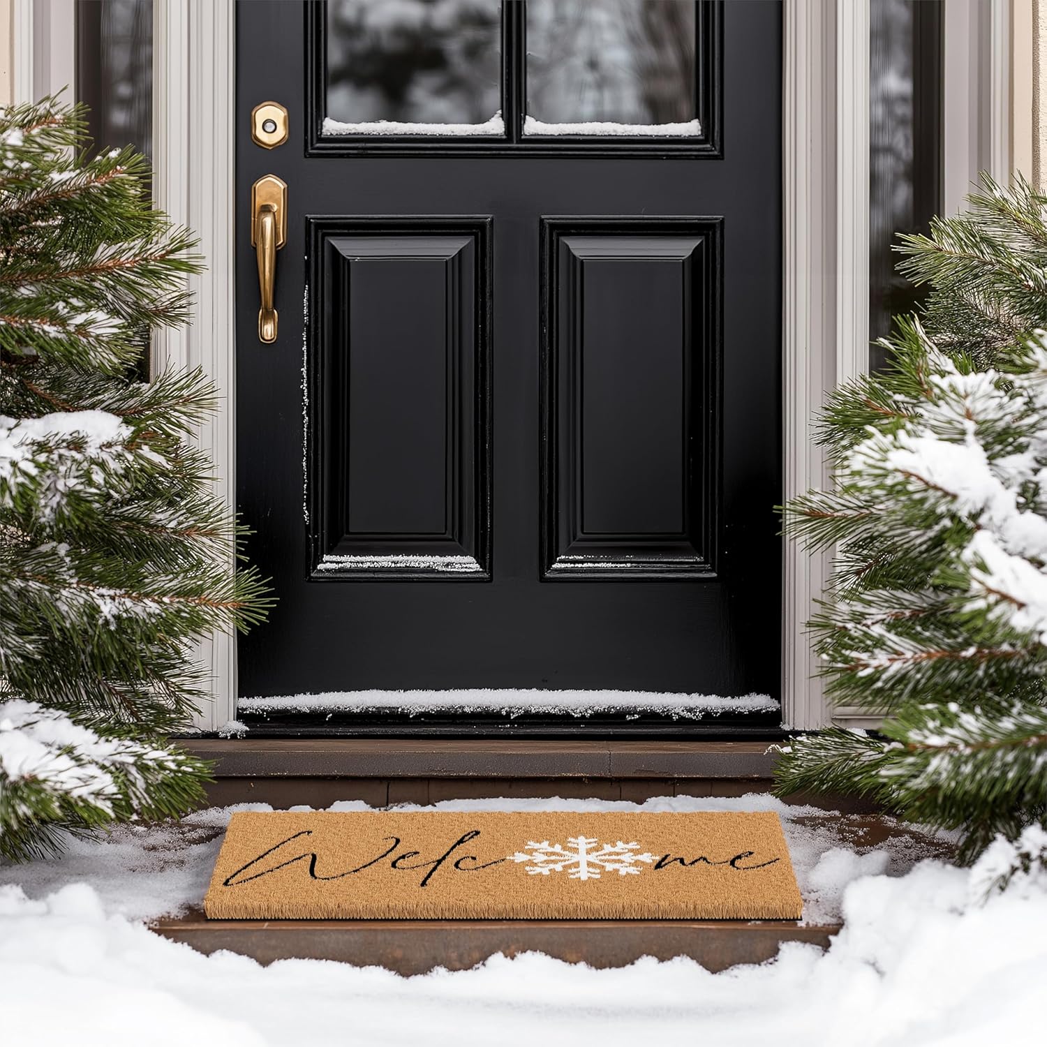 - Versatile - Our Snowflake Welcome winter door mat outdoor entrances is not only perfect for patios, but also makes a great welcome mat for outdoor events or camping trips. Its durable construction is perfect for cleaning dirt and debris from shoes, and the all-weather coir fibers dry quickly. Use it to welcome guests to your home, cabin, or RV.