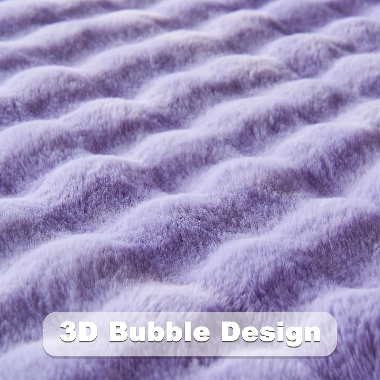 NEWCOSPLAY Faux Fur Twin Blanket Lavender Bubble Blanket Thick Warm Soft for Couch Sofa Bed 550GSM (Lavender, Twin(60"x80"))