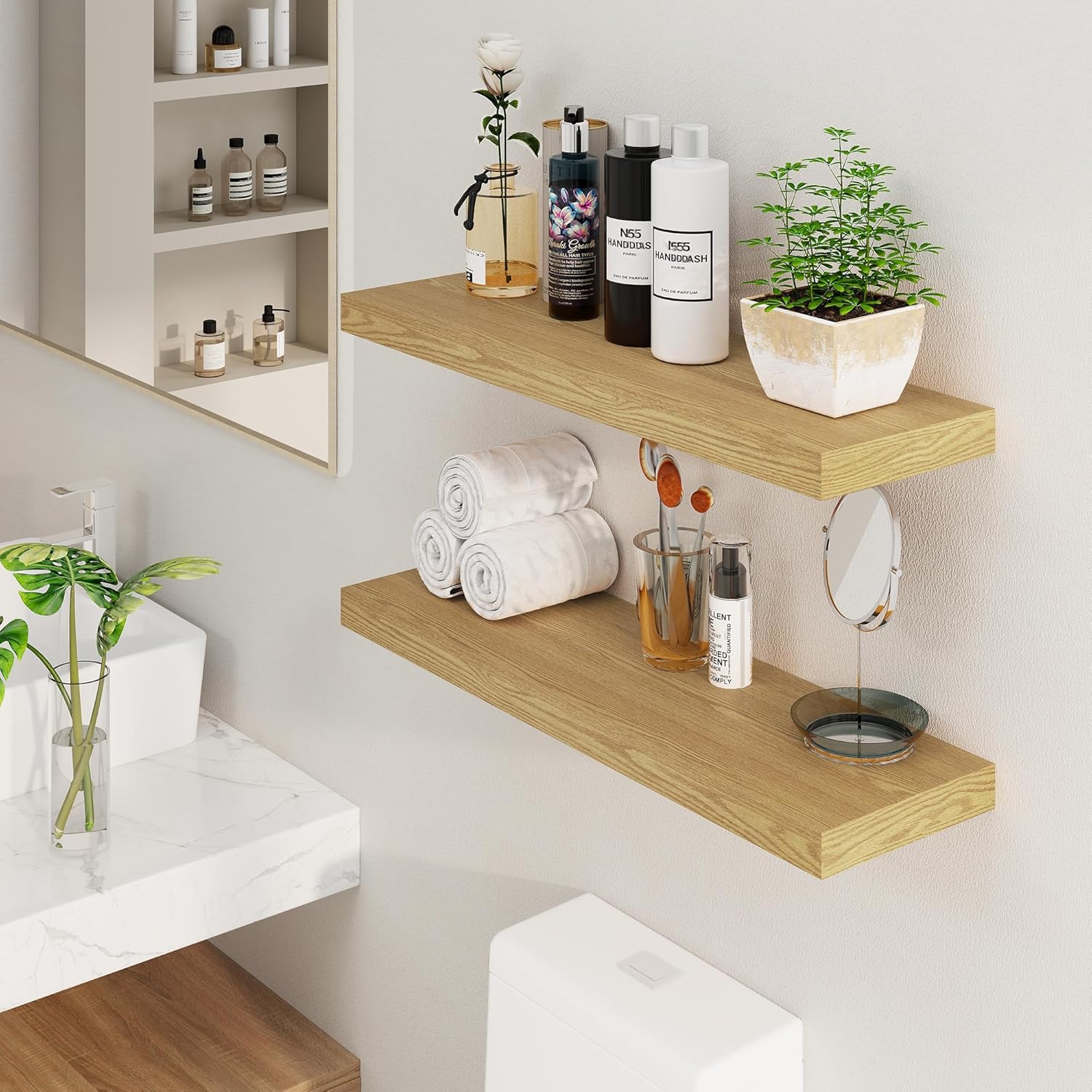 Fun Memories Floating Shelves 36 Inch Long, Deep Floating Shelf for Wall, 36 x 8 Floating Shelves Set of 2, 8 Inch Deep Wall Shelf for Living Room, Kitchen, Bedroom, Large Storage Shelves, Oak Color