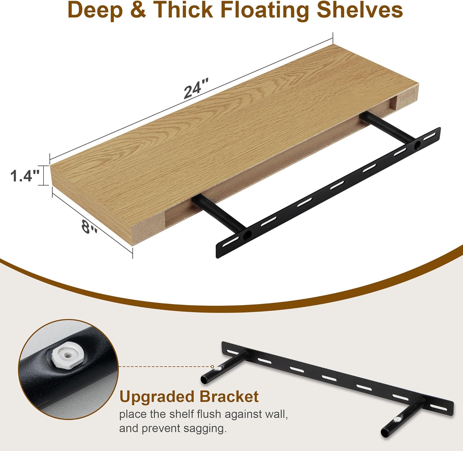 Floating Shelves for Wall, 8 Inch Deep Floating Shelves, 24"W x 8"D Wall Shelves Set of 2, Rustic Wood Floating Shelf for Home Decor, Deep Storage Shelves for Kitchen, Bedroom, Living Room