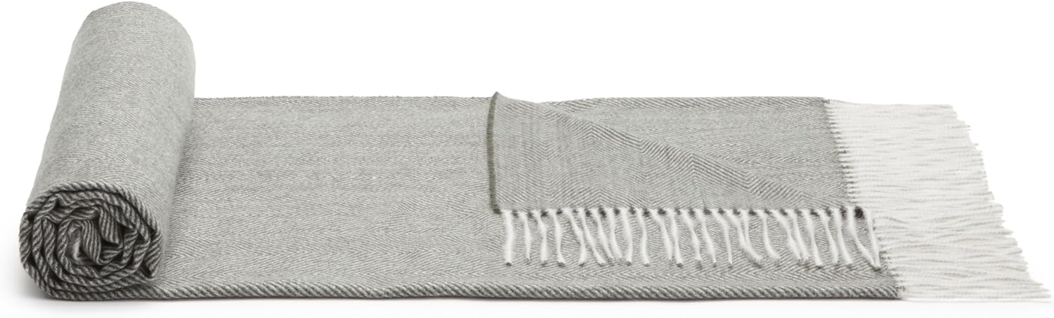 - 50 x 60-inch cozy throw blanket with textured herringbone pattern and fringed edges