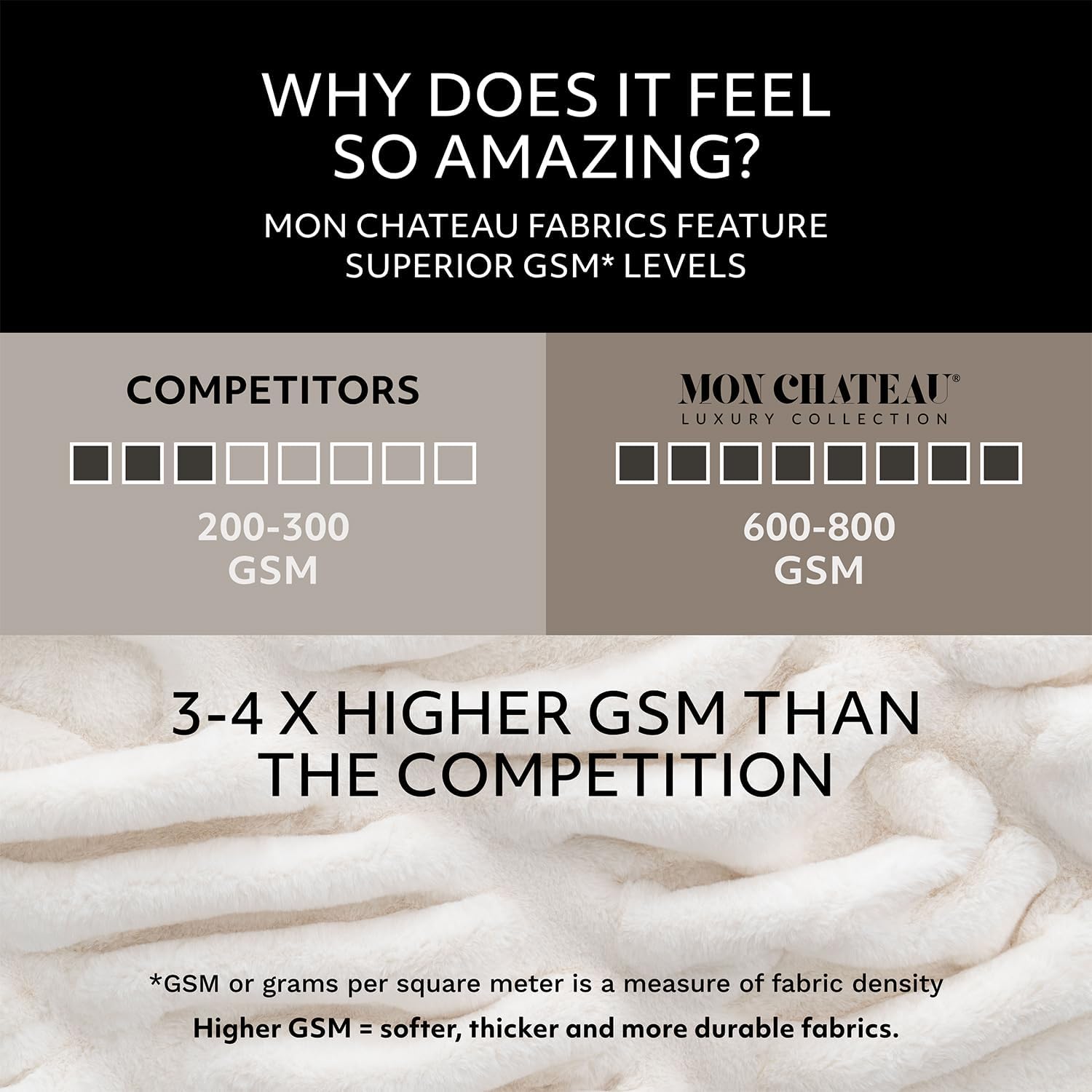 Mon Chateau Luxury Ultimate Plush Faux Fur Throw with 6cm Foldover for Couch, Sofa, or Bed - Plush Ultra Soft Blanket for Sleeping or Home Décor, 60" x 70" (Foldover Ivory)