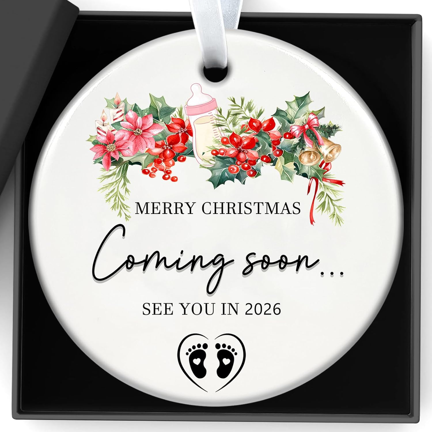 Christmas Ornaments, Expecting Baby Ornament Pregnancy Announcement Merry Christmas Coming Soon See You in 2026 Xmas Hanging Decor Best Gift for Expectant Moms or Grandparents 3 Inch Ceramic