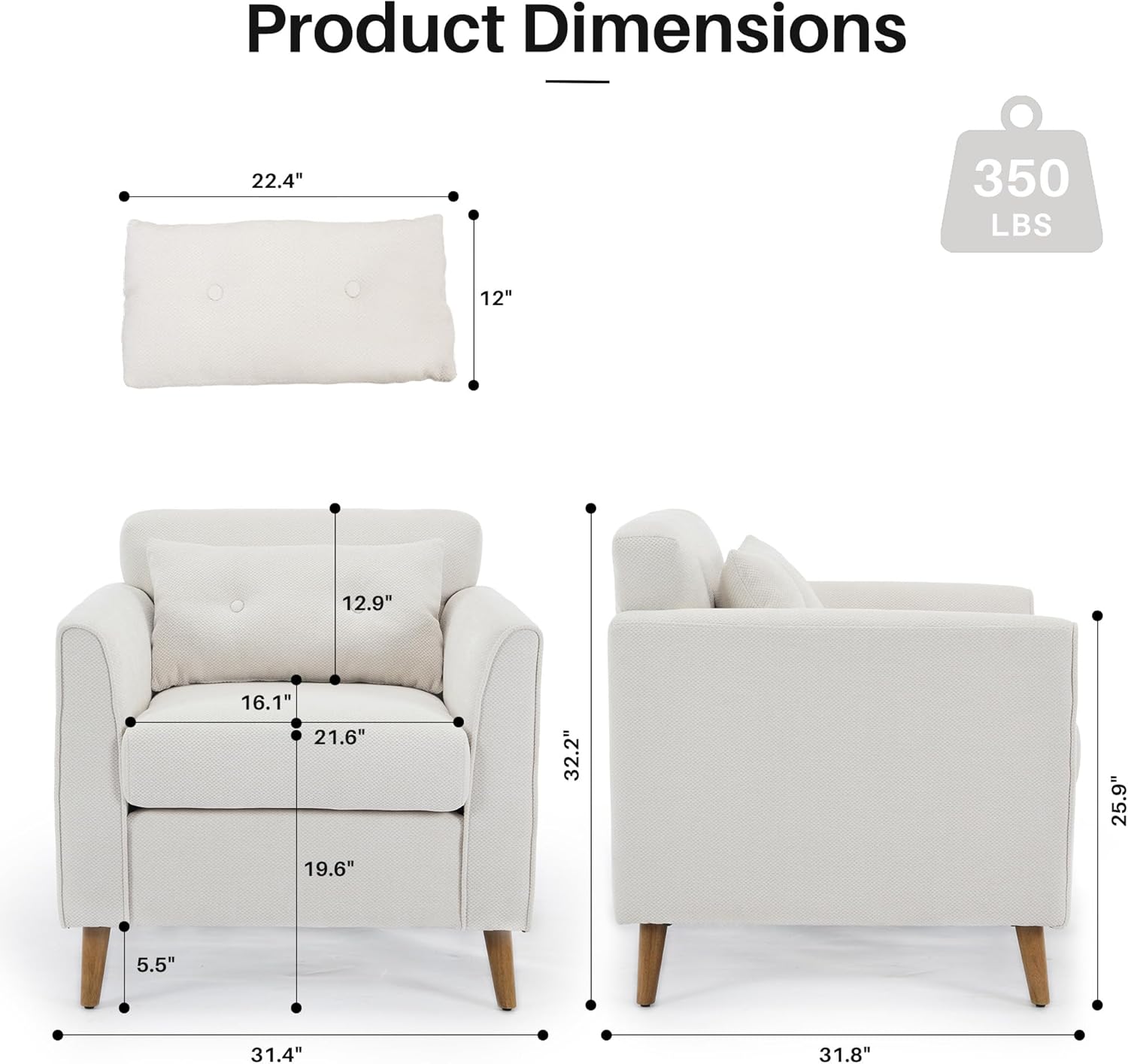 - STURDY AND DURABLE: Constructed with solid wooden legs and a sturdy wooden frame, our living room sitting chair is designed for exceptional stability and support. With a 300 lbs weight limit. Soft yet resilient fabric upholstery& reinforced wooden legs ensure long-lasting use.