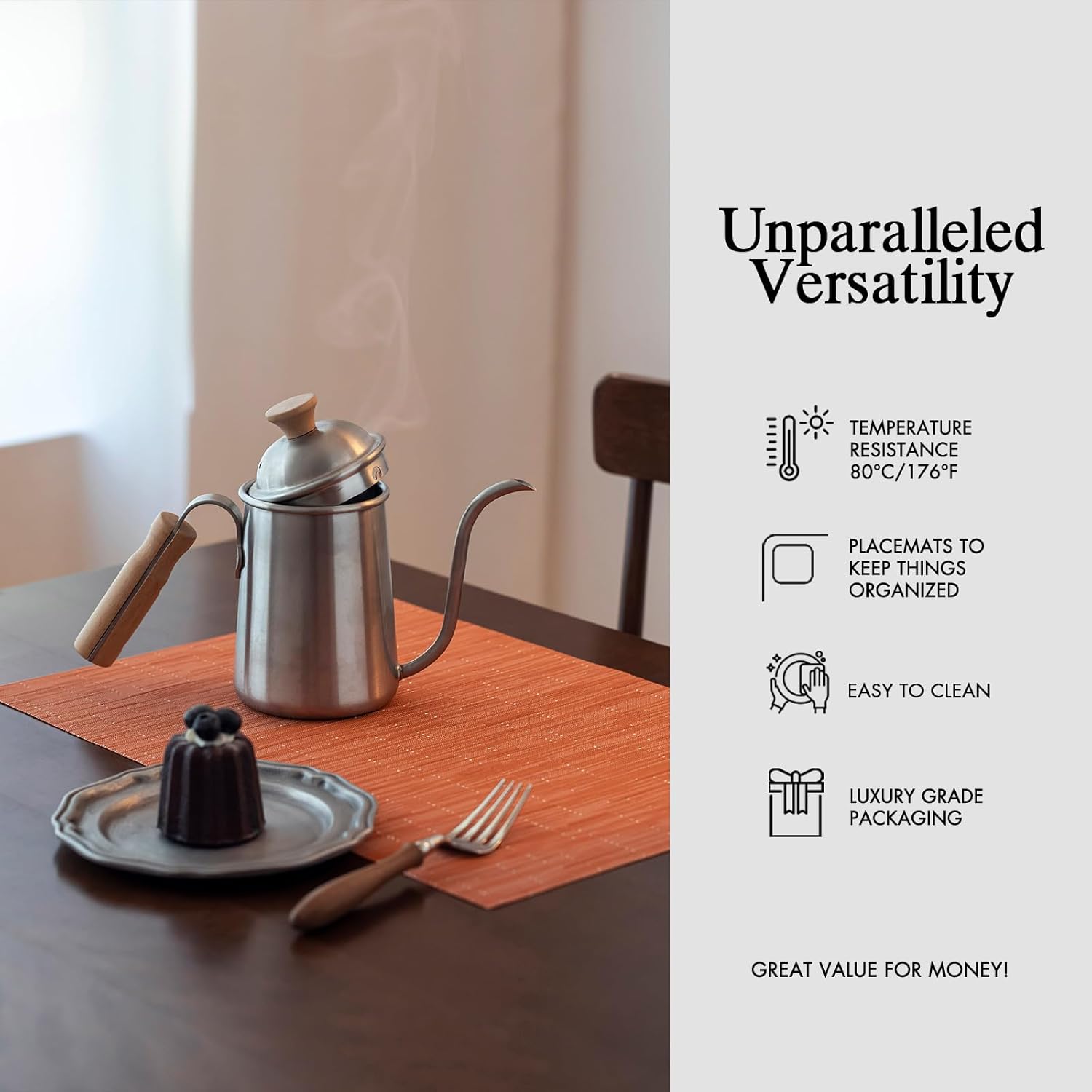 - Premium Quality and Durability: Onebento placemats are made from a high-quality blend of 70% PVC and 30% polyester, offering exceptional durability and aesthetic. This combination ensures long-lasting use and superior protection for your dining table, making it a perfect choice for quality-required consumers.