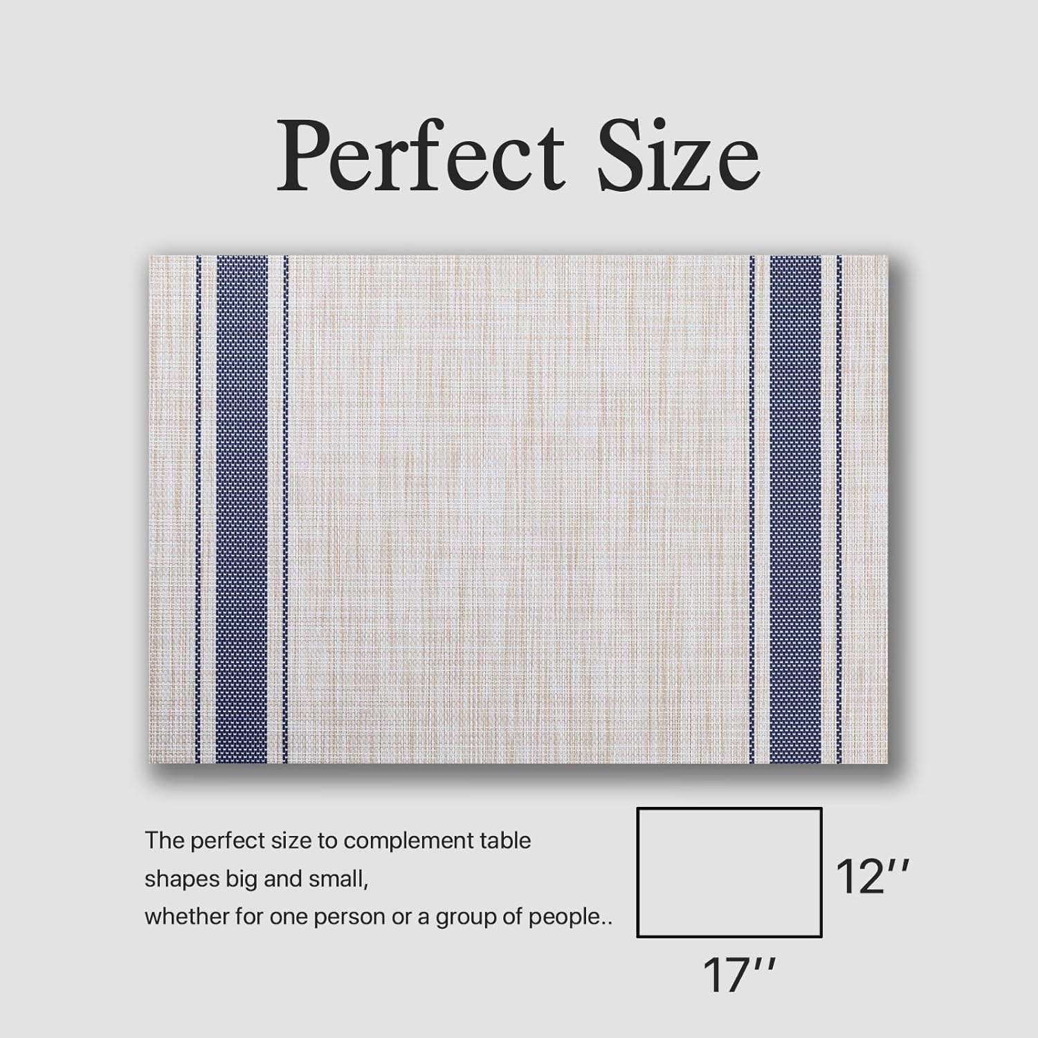 Placemats Set of 12 - Easy Clean Woven Vinyl Placemats for Dining Table, Indoor/Outdoor Place Mats, Washable PVC Table Mats(Blue Skyline)