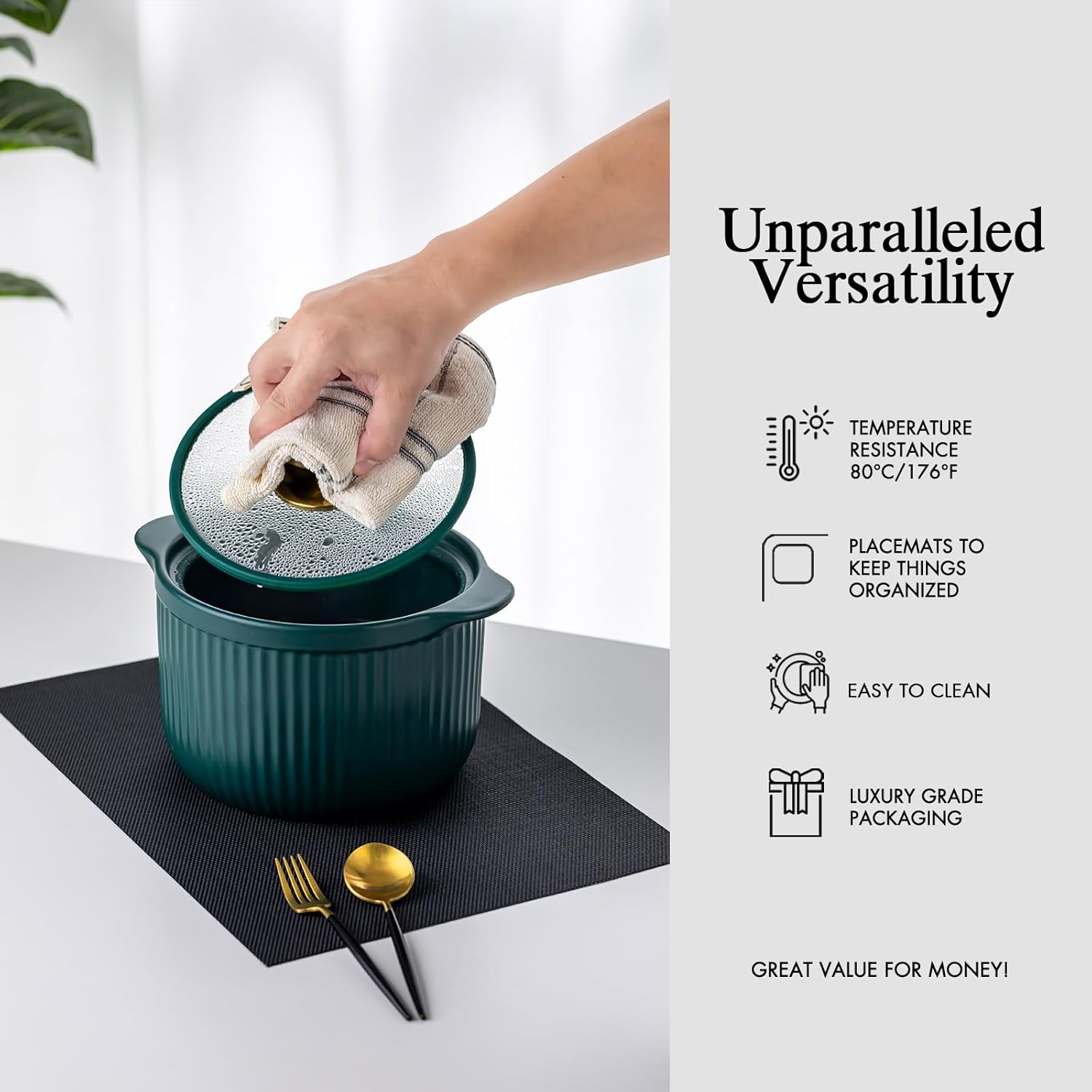 - Protects Your Table: Protect your dining table from scratches, spills, and heat with Onebento placemats. They can withstand temperatures up to 176℉(80℃), ensuring your table stays safe from hot dishes while adding a stylish element to your dining experience. Made of polypropylene plastic, which is a long-lasting material and offers great protection for your table.