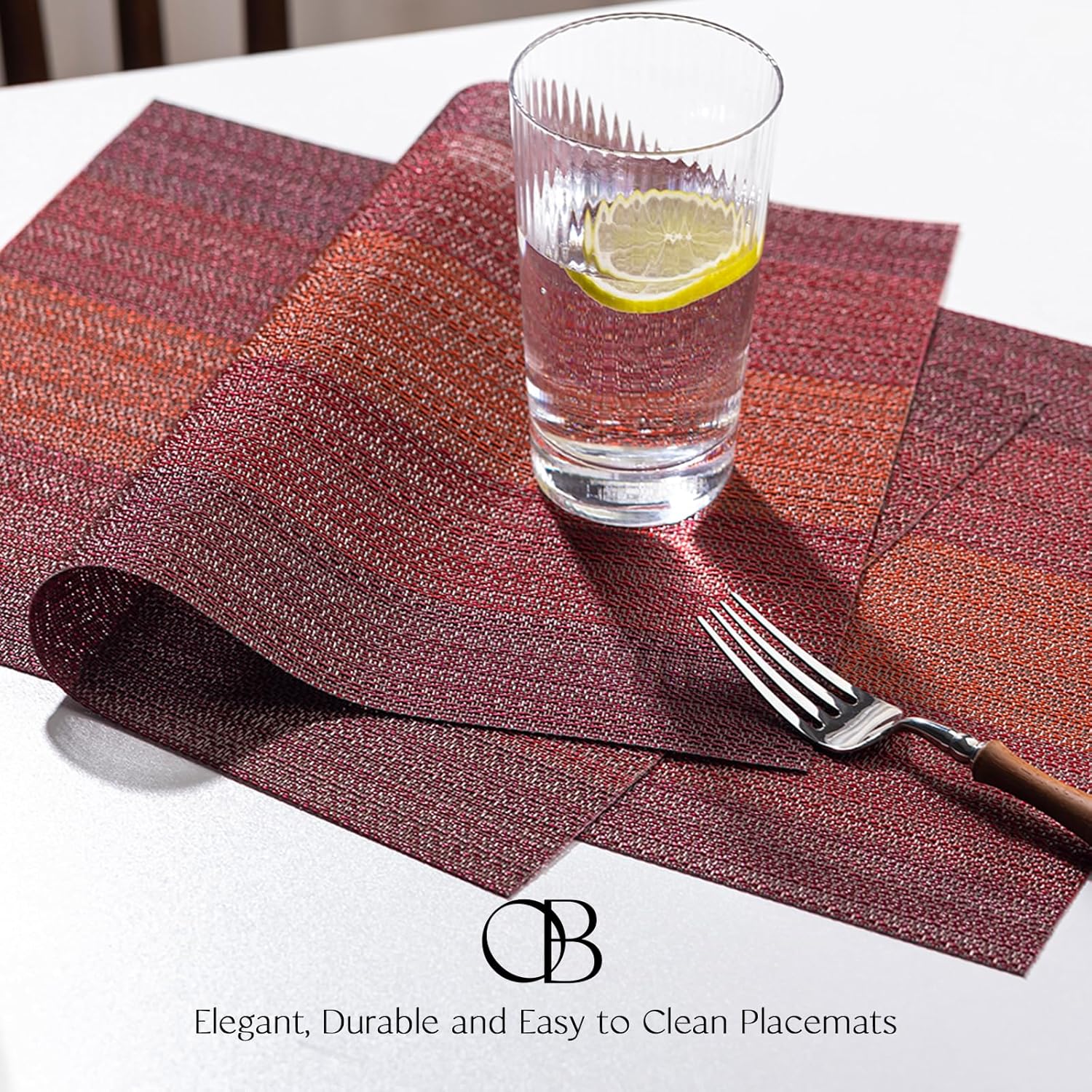 Placemats Set of 6 - Easy Clean Woven Vinyl Placemats for Dining Table, Indoor/Outdoor Place Mats, Washable PVC Table Mats(Pomegranate Parade)