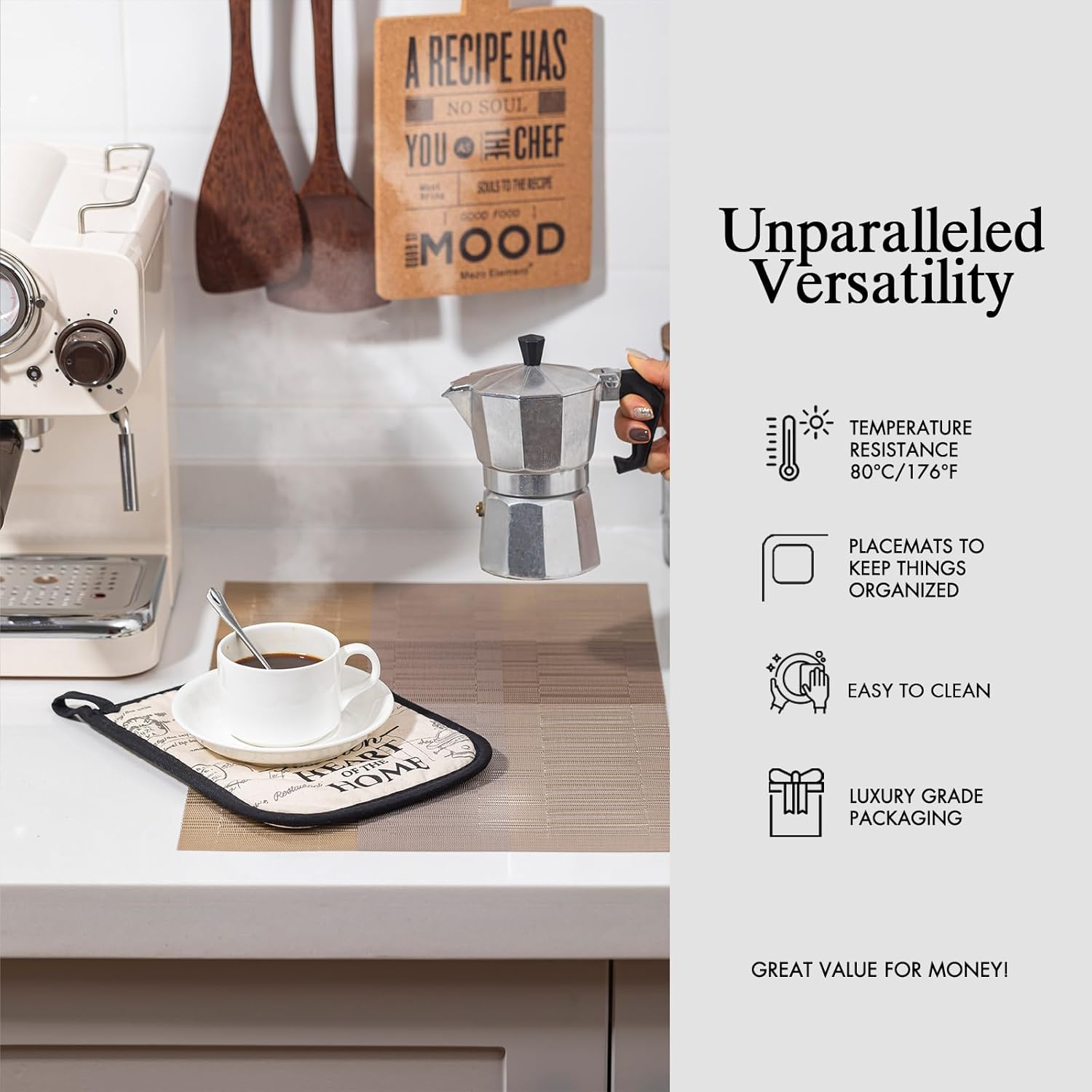 - Premium Quality and Durability: Onebento placemats are made from a high-quality blend of 70% PVC and 30% polyester, offering exceptional durability and aesthetic. This combination ensures long-lasting use and superior protection for your dining table, making it a perfect choice for quality-required consumers.