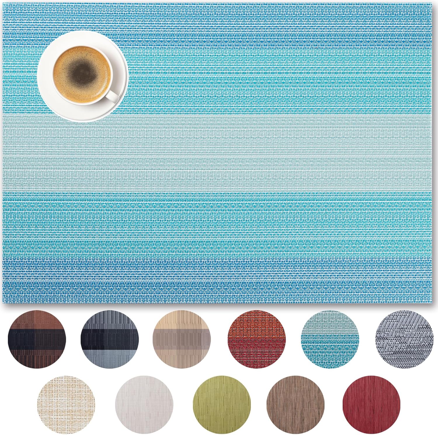 Placemats Set of 12 - Easy Clean Woven Vinyl Placemats for Dining Table, Indoor/Outdoor Place Mats, Washable PVC Table Mats(Ocean Geode)