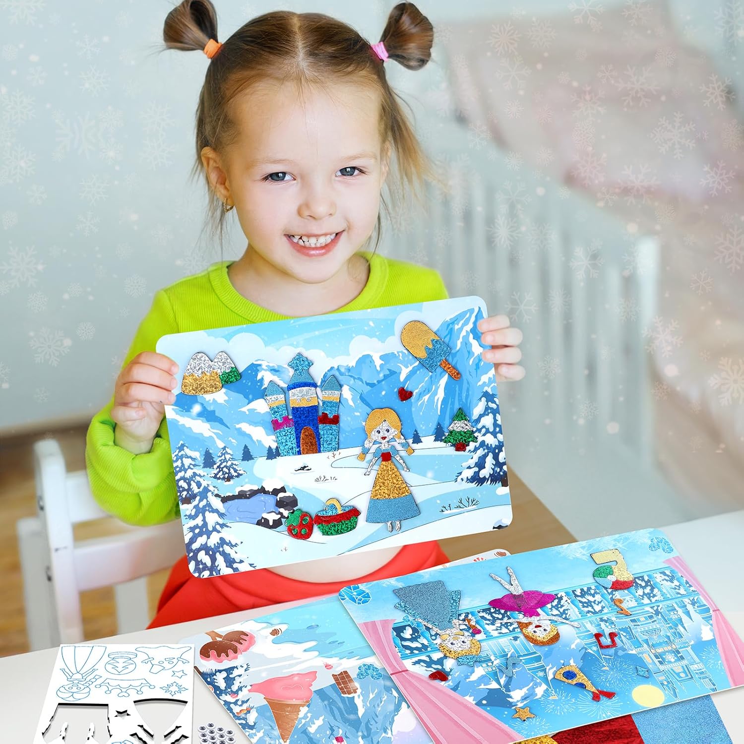 PERRYHOME Foil Arts & Crafts for Kids-DIY Frozen Fun Foil Art Kit Toys,Mess Free Coloring,Kids Car Airplane Travel Activities Toys,Birthday Christmas Gifts for Girls Children Toddler Ages 4-9