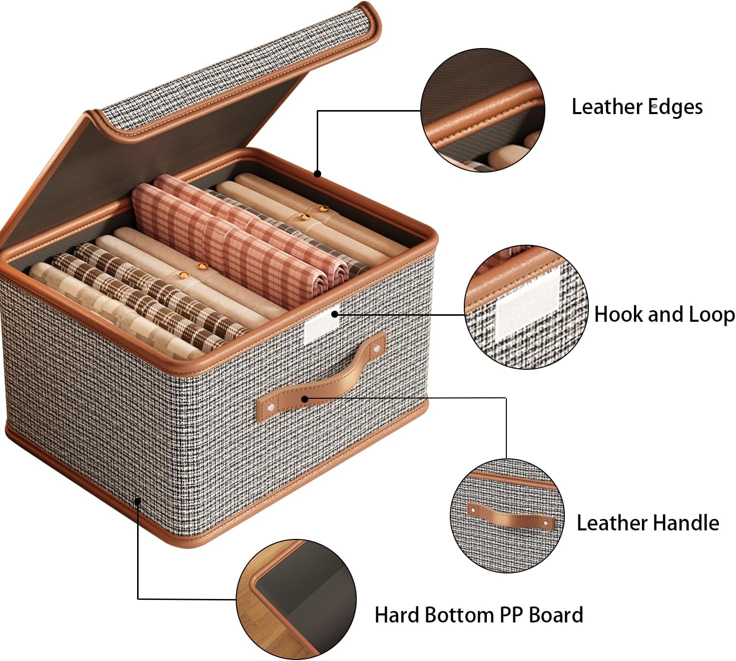 - Large Storage Bins with Lids and Leather Trim: This lid provides added protection for your belongings inside the cube storage organizer, ensuring they stay safe and secure. The leather trim reduces wear, while the convenient handles add to the overall convenience. It's a thoughtful design that extends the usability of the fabric storage boxes with lid