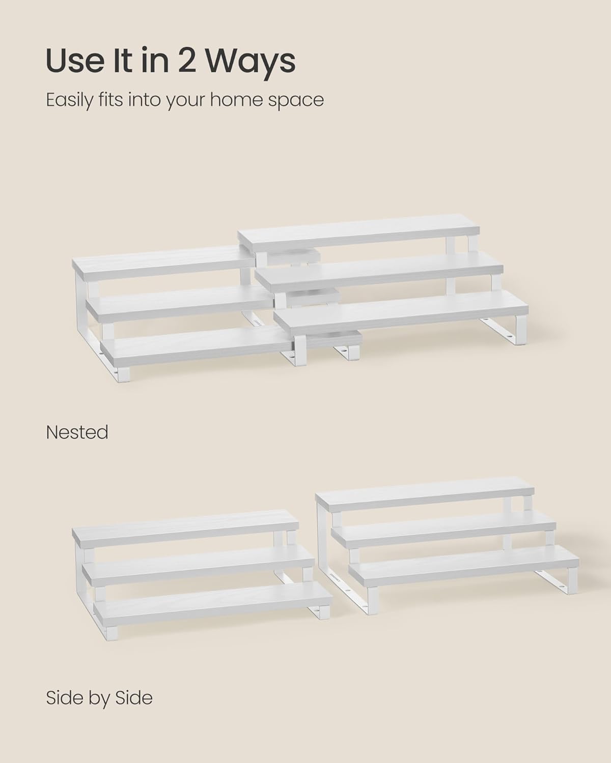 SONGMICS Display Risers, Set of 2 Engineered Wood Perfume Organizer Stand, 3-Tier Cupcake Stand Holder, Spice Rack, Shelf Risers for Figures, Dessert Shelves, Snow White and Cloud White UKCS116W01