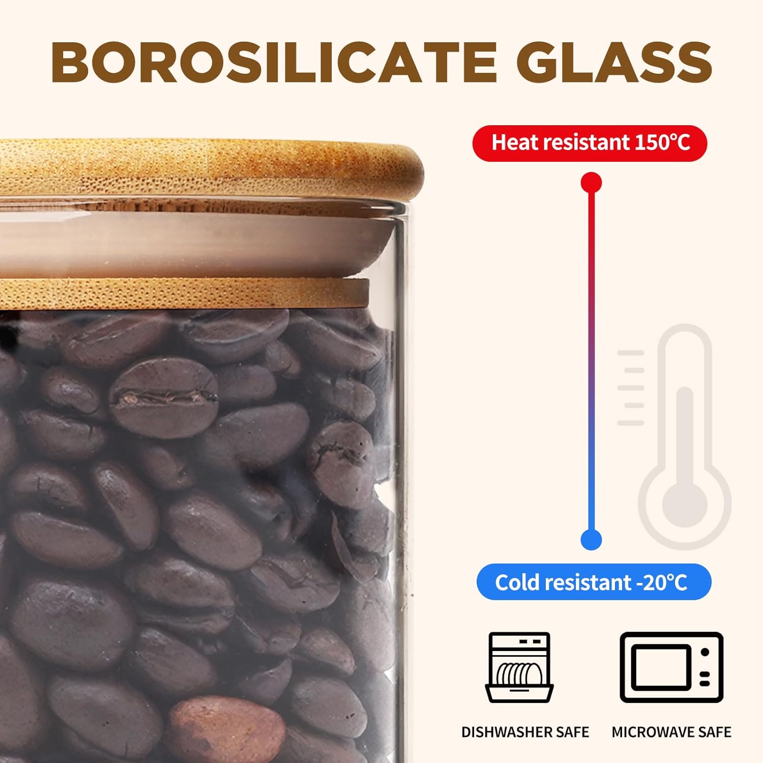 • [Premium quality and safety assurance] Our glass containers with bamboo lids are made of premium quality and borosilicate glass, glass pantry storage containers can withstand the harsh tests of daily use. The bamboo lid provides an airtight seal, ensuring the freshness of stored food. Our glass food storage jars are BPA Free, Phthalate Free, PVC Free, Lead Free, They are healthy and reliable choice for your kitchen.