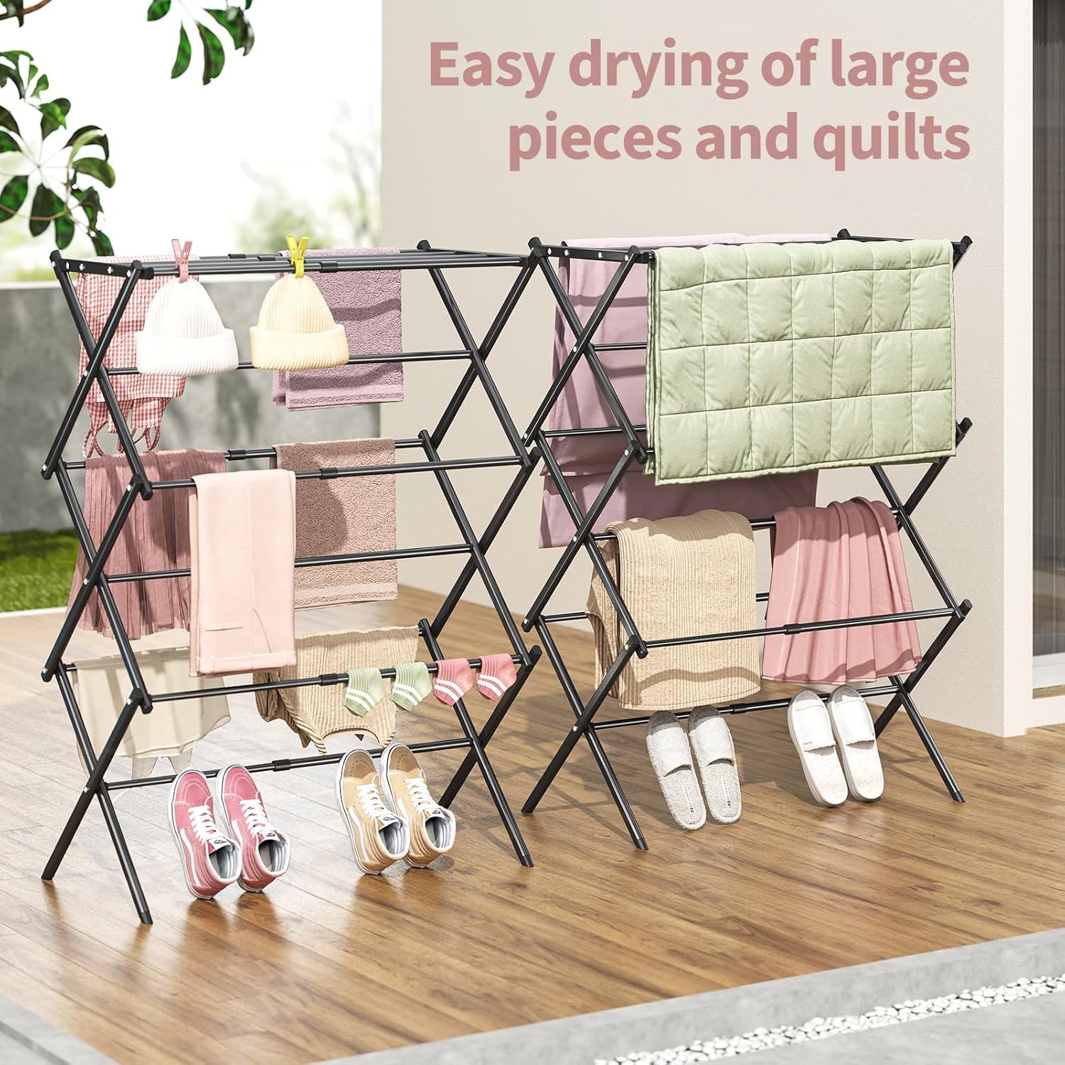 APEXCHASER Clothes Drying Rack, 3-Tier Laundry Drying Rack for Clothes, Expandable Metal Clothing Dryer, Collapsible Towel Rack, Air Drying Rack, Black