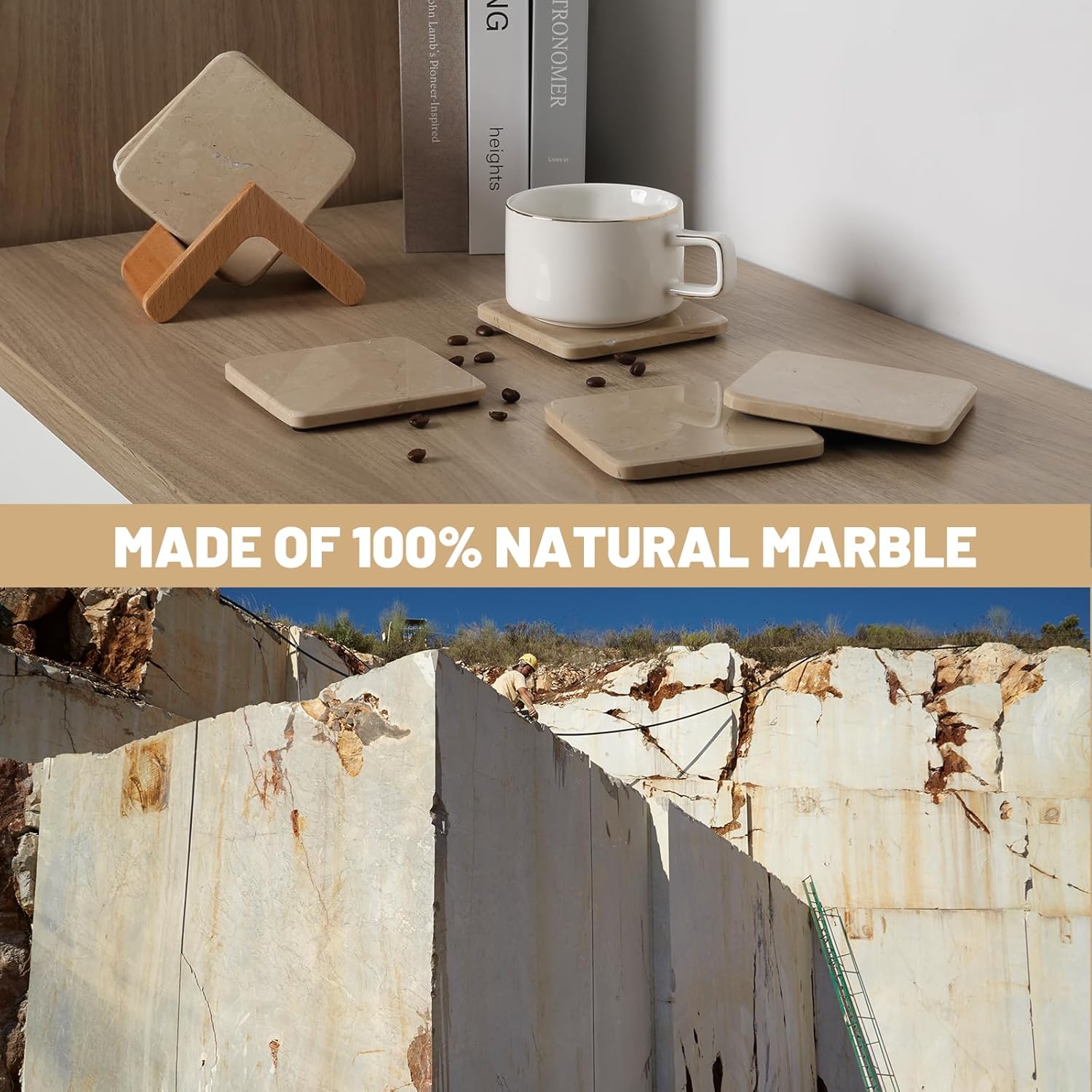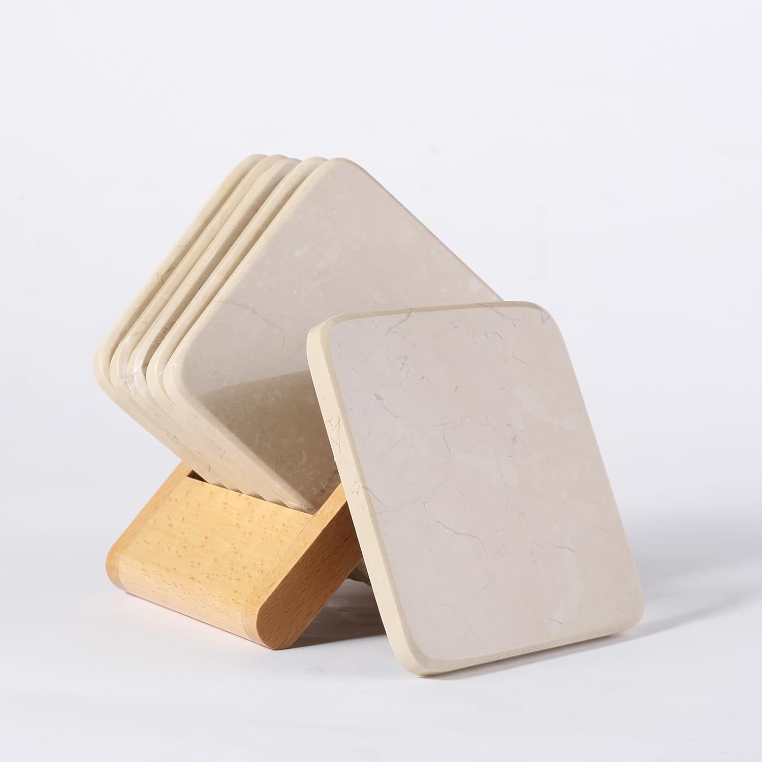 - Comes with Wood Storage Holder - Our marble coasters come with a sleek wooden holder for tidy storage and display. Simply wipe clean with a damp cloth, no fuss, just understated elegance for your home or office