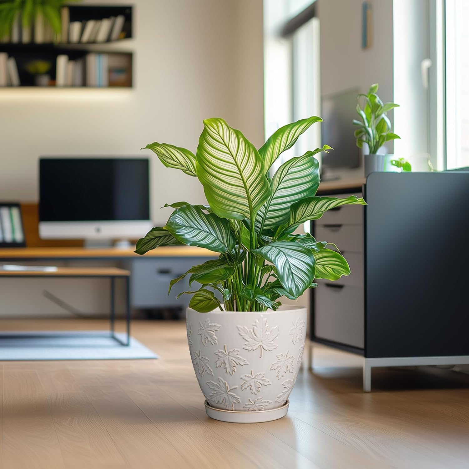 - Stylish Appearance: Our ceramic planter pot has a white main colour, a beautiful embossed maple leaves pattern on the surface, elegant appearance making it ideal for home decor, garden decor and office decor