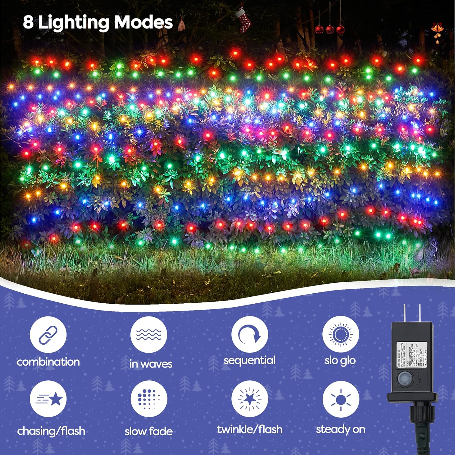 WBao Christmas Lights Outdoor, 200LED 8.4ft x 5.2ft Christmas Net Lights with 8 Modes, Timer, End to End Connectable, Waterproof LED Net Lights for Lawn, Bushes, Trees Xmas Decorations, Multicolor