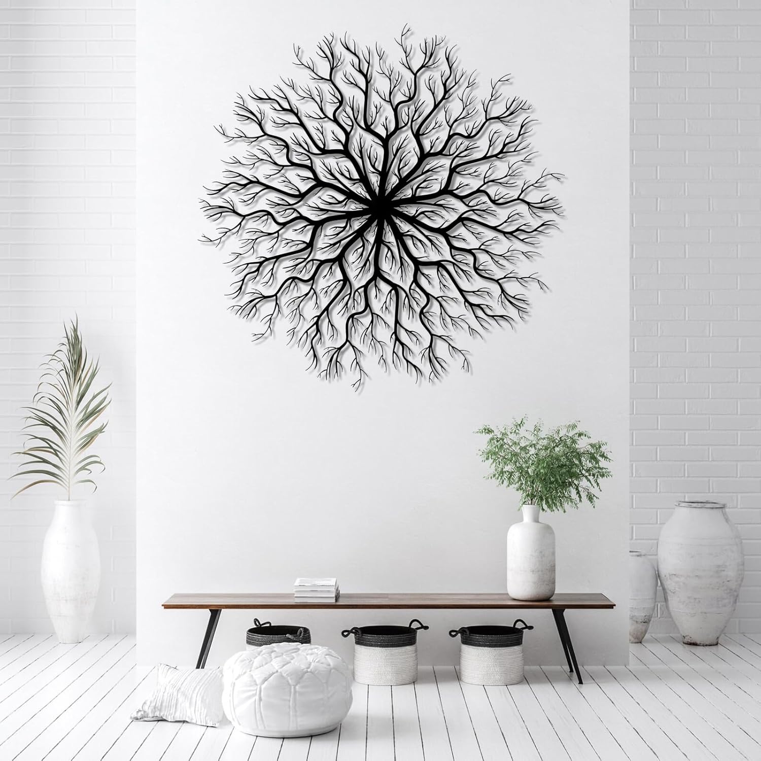 Tree of Life Metal Wall Art, Metal Tree Wall Art, Large Round Sculpture, Round Branch Wall Decor, Large Branch Artwork, Nature Sign, Wall Decor for Living Room, Housewarming Gift (Silver, 28"x28"|70x70cm)