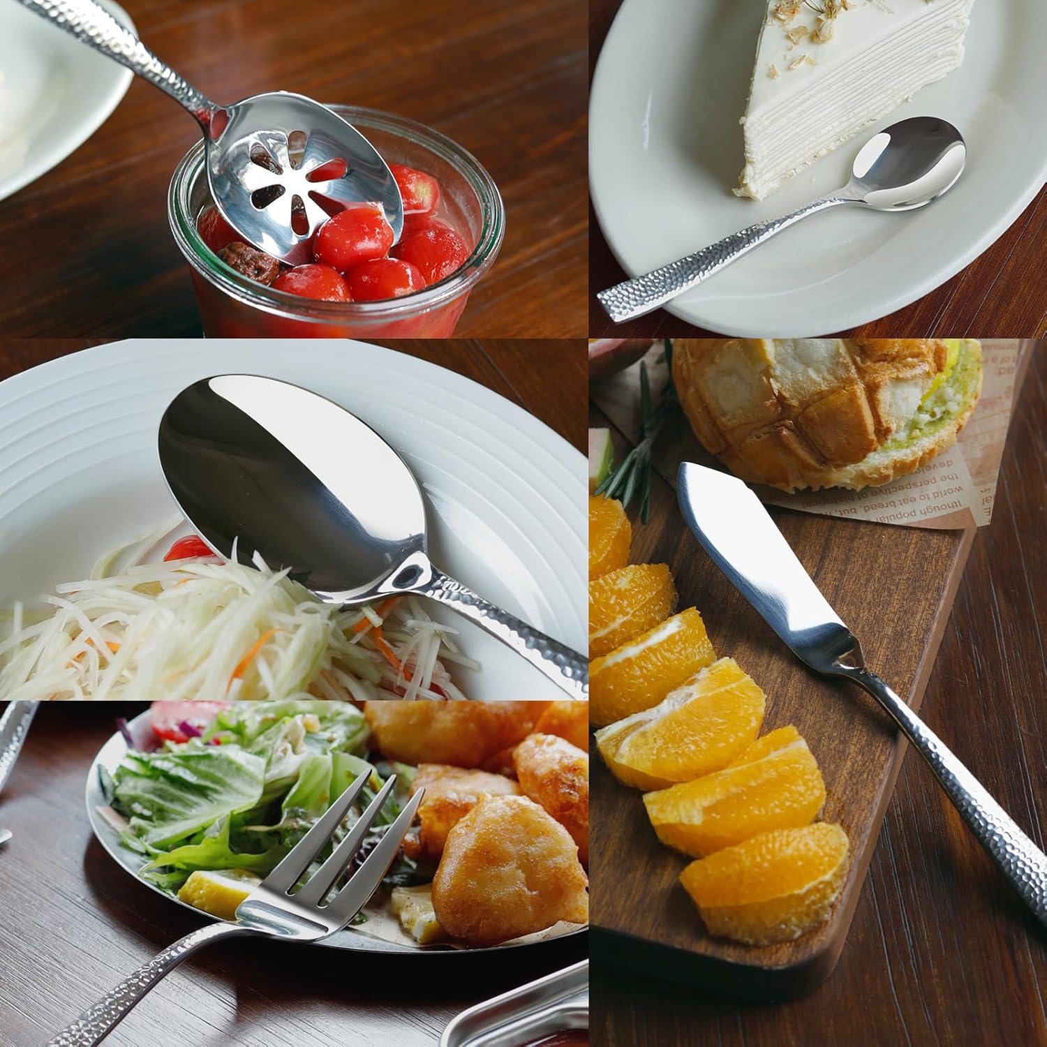 Silverware 45-Piece Silver Hammered Flatware Set with Serving Utensils Stainless Steel Thick Handle Mirror Polished Cutlery Set for Wedding Hotel Restaurant, Service for 8