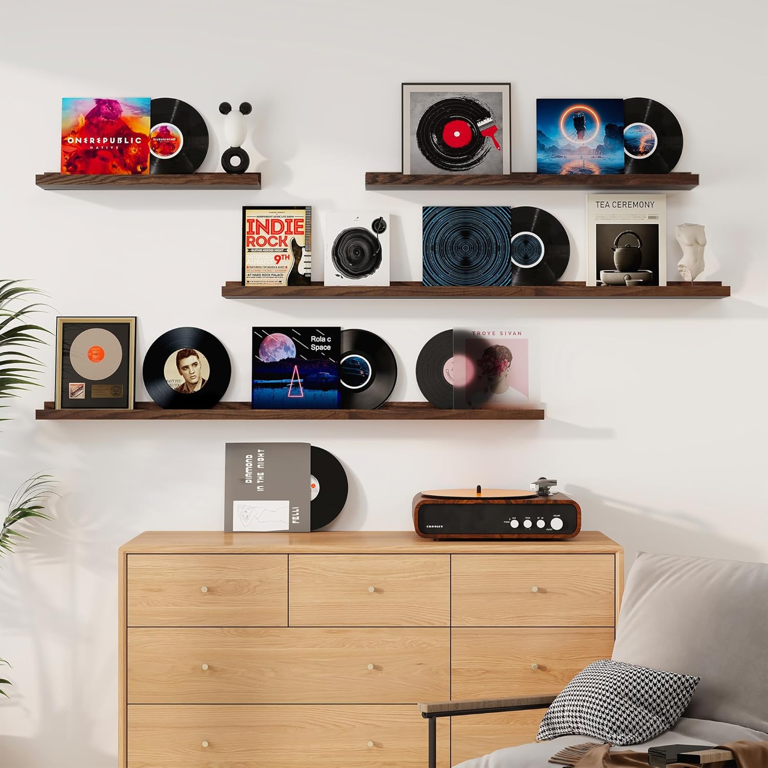 • Picture Ledge Design: Ideal for displaying photos, artwork, small plants, or collectibles, these shelves feature a thoughtful ledge design with a subtle lip and a shallow groove behind it. This design securely holds items in place while maintaining a clean, modern look.