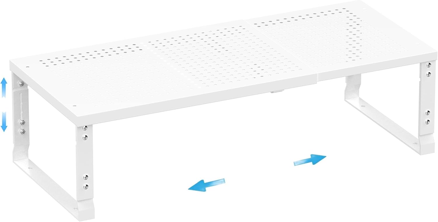 - âăExpandable,StackableăThe shelves can easily expand and contract according to your storage needs, whether it is kitchen clutter or office supplies.You can combine multiple shelves together to form a large storage system, or separate them into several separate smaller units(MeasureïŒ10.24"D x 16.54"W~27.17"W x 8.31"H/7.68"H/7.05"H/6.42"H)