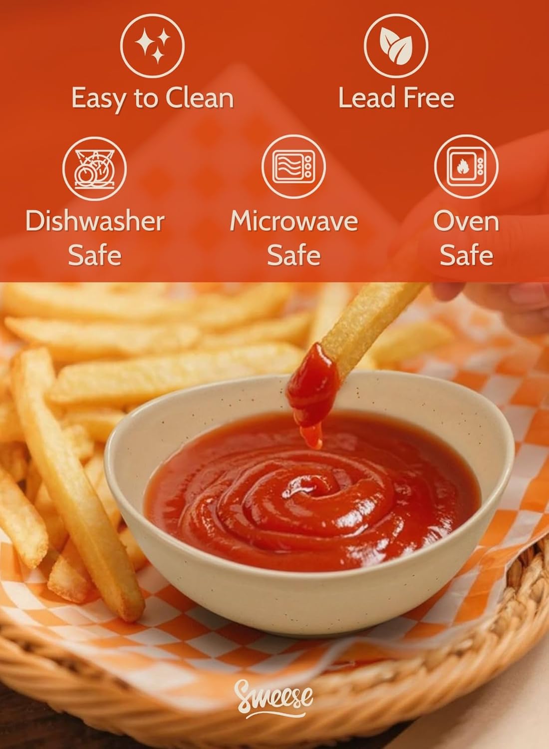 Sweese 4 oz porcelain bowls set of 6 - small dipping, sauce, snack side dish bowls - microwave, dishwasher, oven safe beige