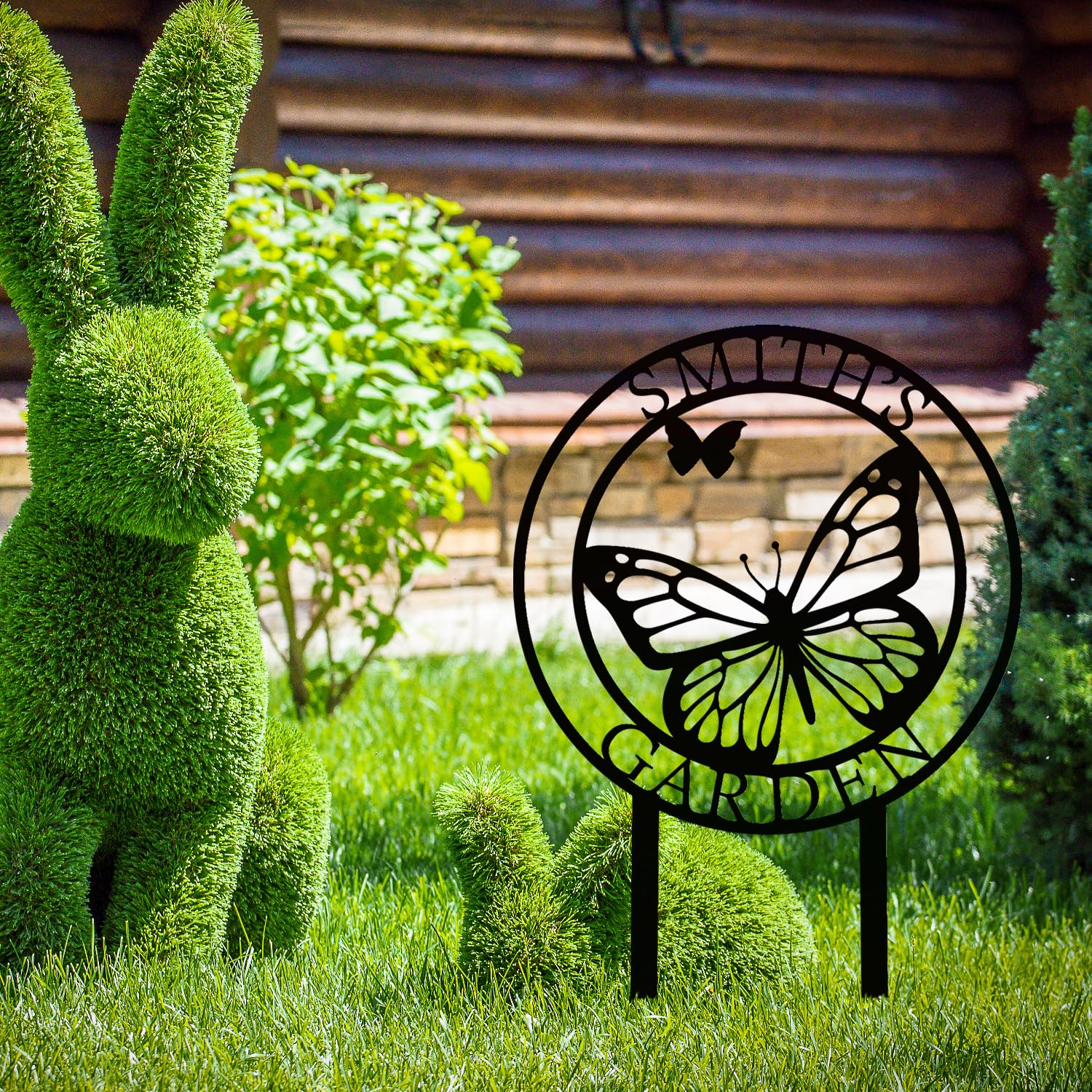 Custom Butterfly Metal Garden Sign with Stakes, Metal Yard Art, Personalized Butterfly Home Garden Decor, Garden Family Name Sign for Outdoor New Home Gift for Outside, Patio Decor, Housewarming Gift