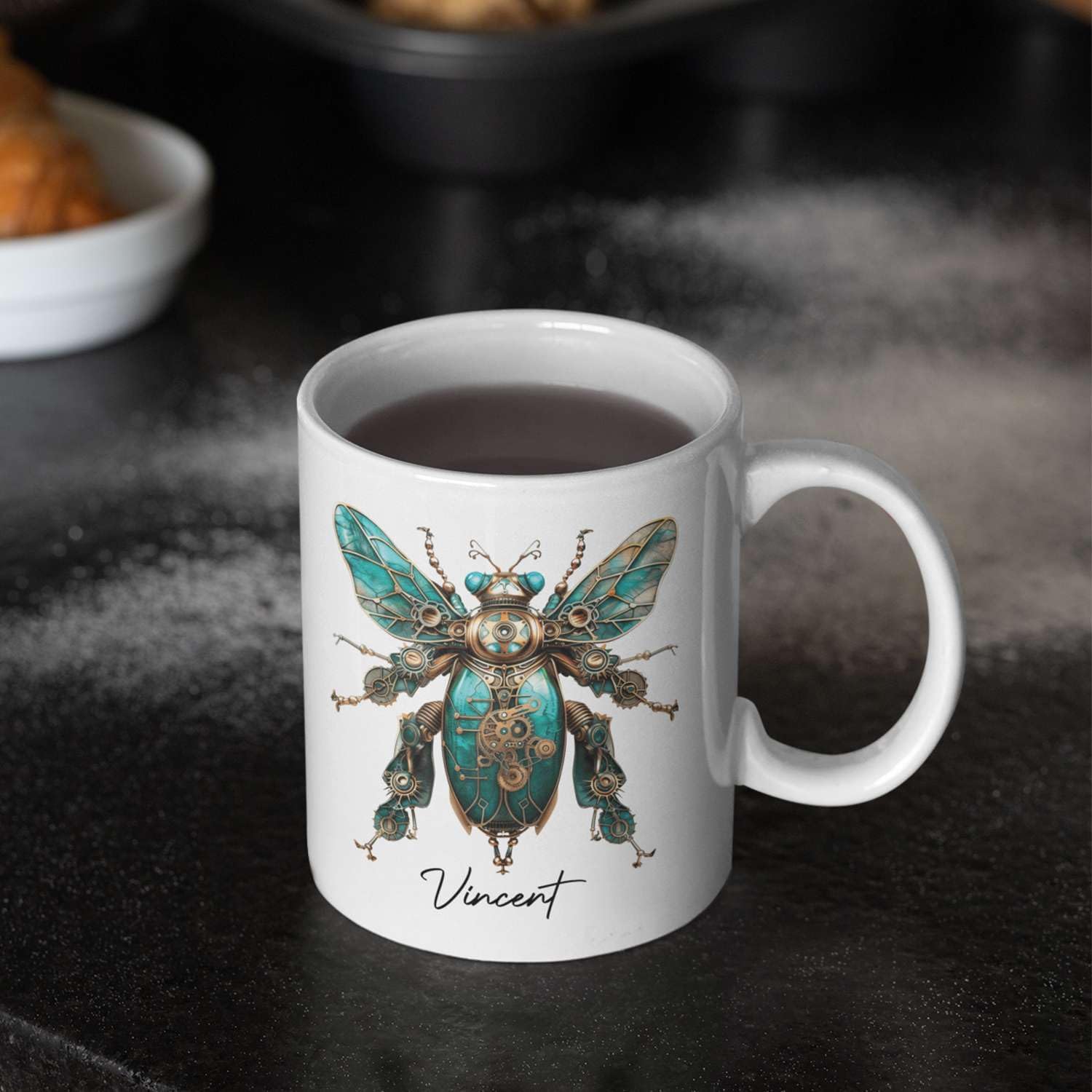 - ✨【UNIQUELY PERSONALIZED】Celebrate your love for science fiction with this Unique Mechanical Insect Art Ceramic Cup. Featuring a personalized steampunk beetle design, this 11oz coffee mug allows you to add a custom name for a special touch. Click "Customize Now" to create a novelty mug gift for science fiction enthusiasts. This customized white mug is ideal for daily use and makes a unique and thoughtful present for any occasion.
