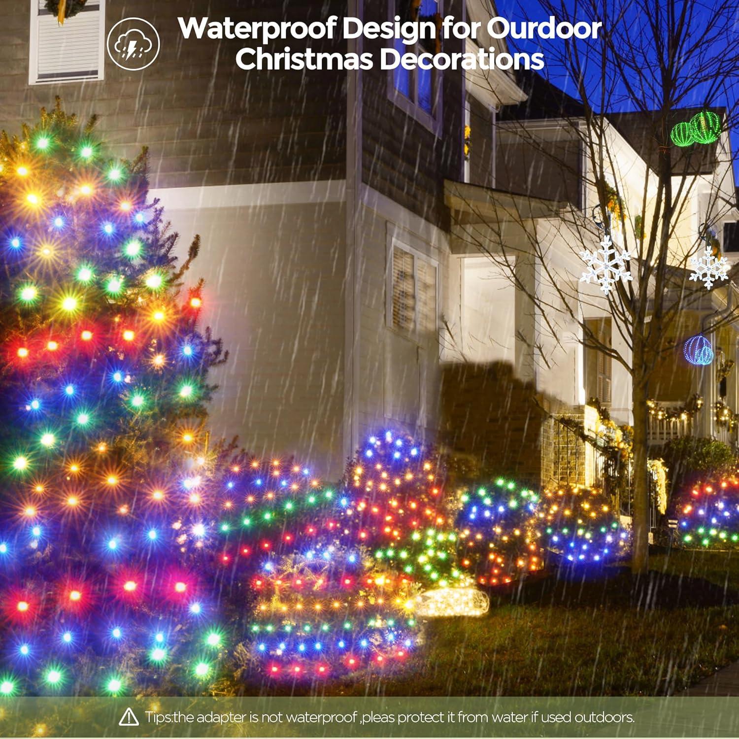 - Waterproof Outdoor Christmas Bushes Lights: WBao plug in Christmas net lights are IP44 waterproof and can be used outdoors in any weather condition. But the adapter is not waterproof, when used outdoors, it is necessary to ensure that the plug power supply is not exposed to rain.