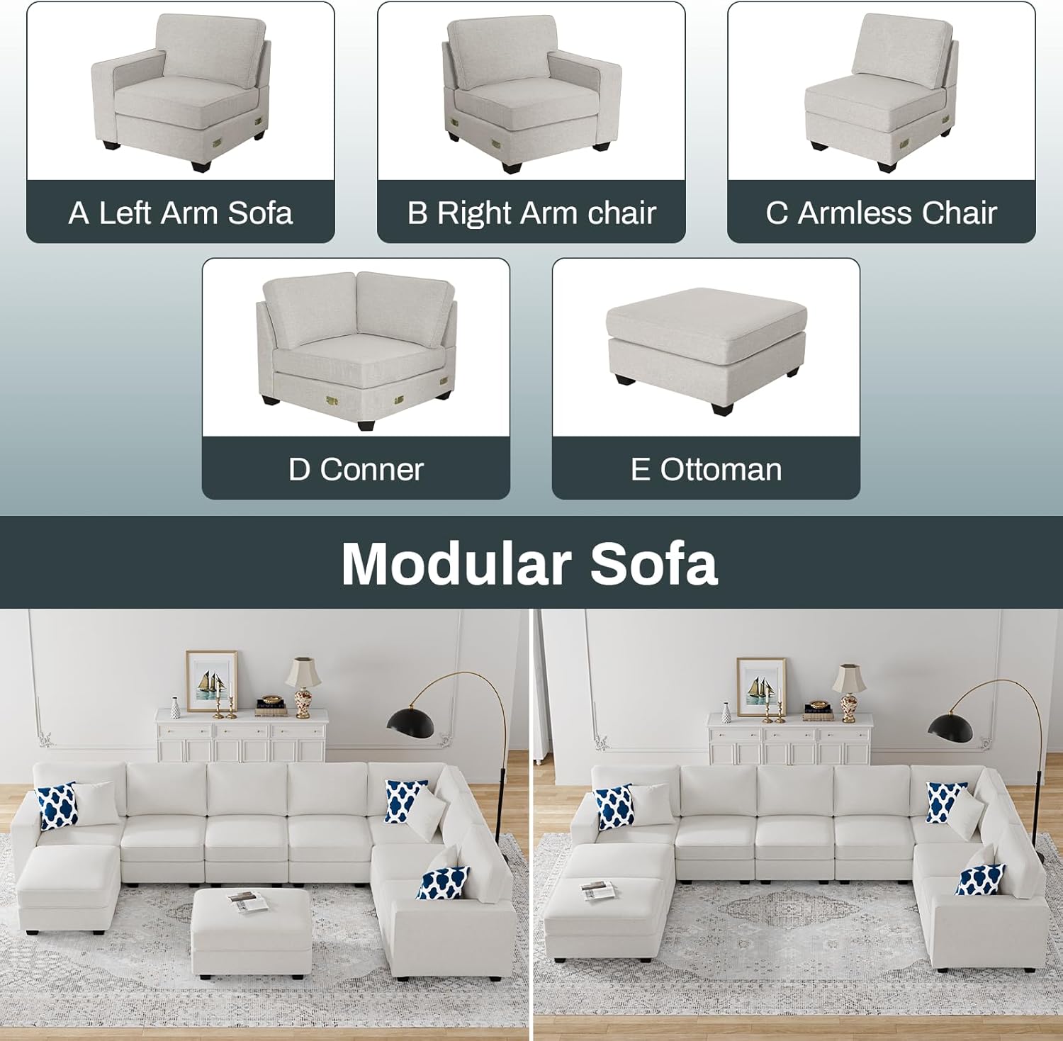 L Lengend Vansen Modular Sectional Sofa U Shaped Couch with Ottoman Modern Reversible Corner Sectional Couch for Living Room (Cream, U Shaped Sofa-5)