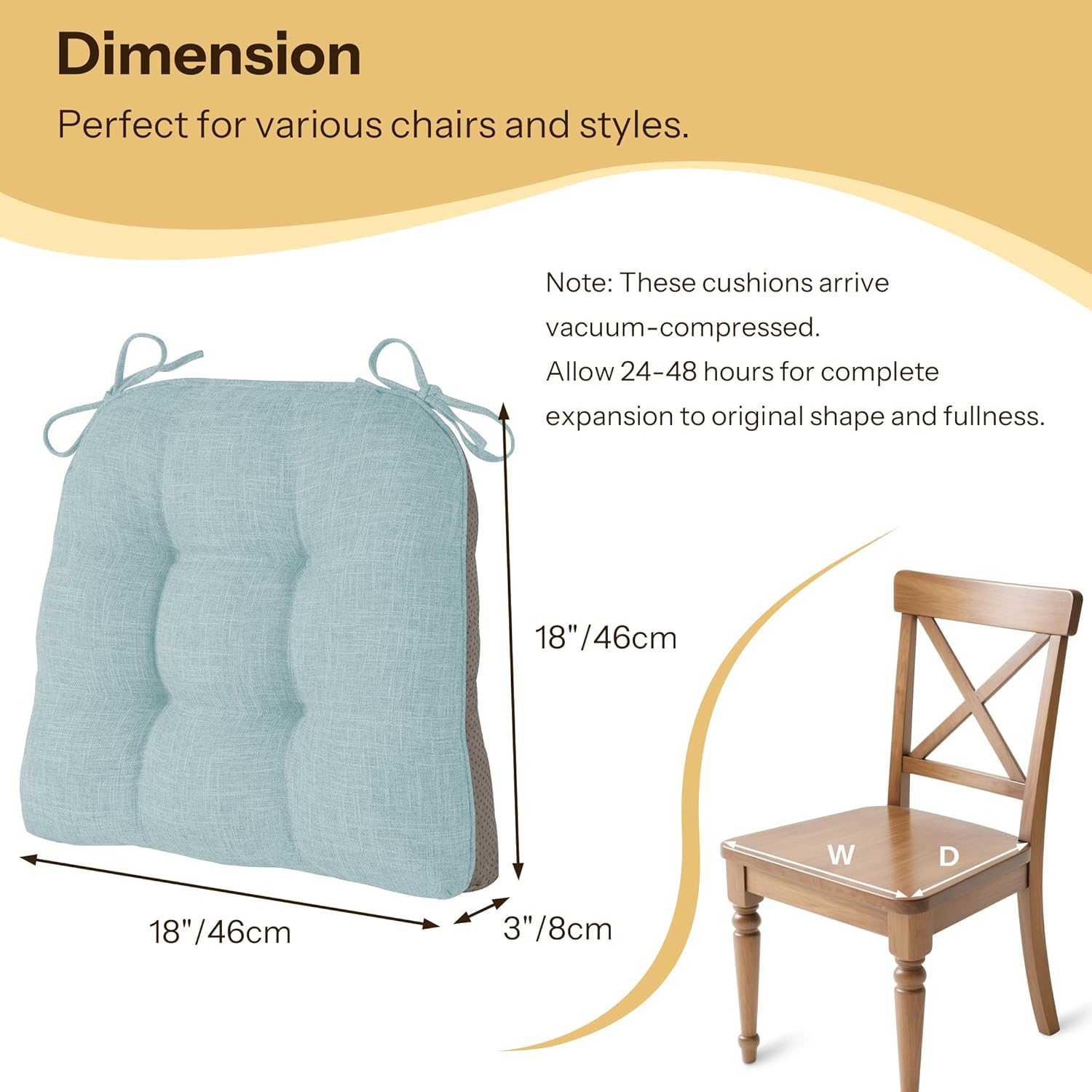 - Large Size Design: Our kitchen chair cushions set of 4 measures 18" x 18" x 3", perfect for most dining chairs, kitchen chairs, and office chairs, instantly transforming hard seats into cozy, stylish seating solutions for any room. The chair cushions for dining chairs are vacuum-packed for shipping. Upon receiving them you can simply follow the easy steps to fluff it for optimal comfort.