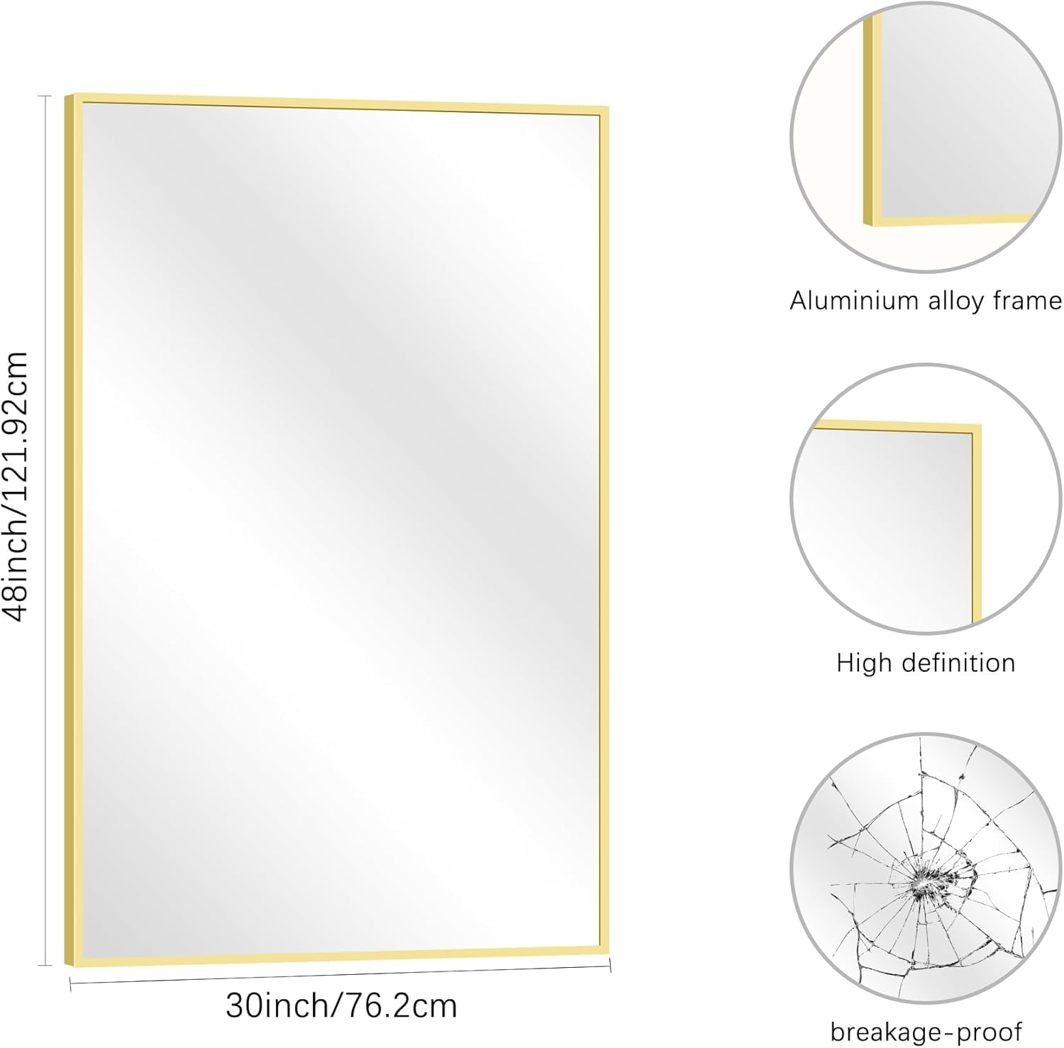 Gold Bathroom Mirror for Wall, 30x48 Inch Rectangle Mirrors with Metal Frame, Modern Vanity Wall Mirror Decor for Bathroom Living Room, Entryway Hangs Horizontal or Vertical