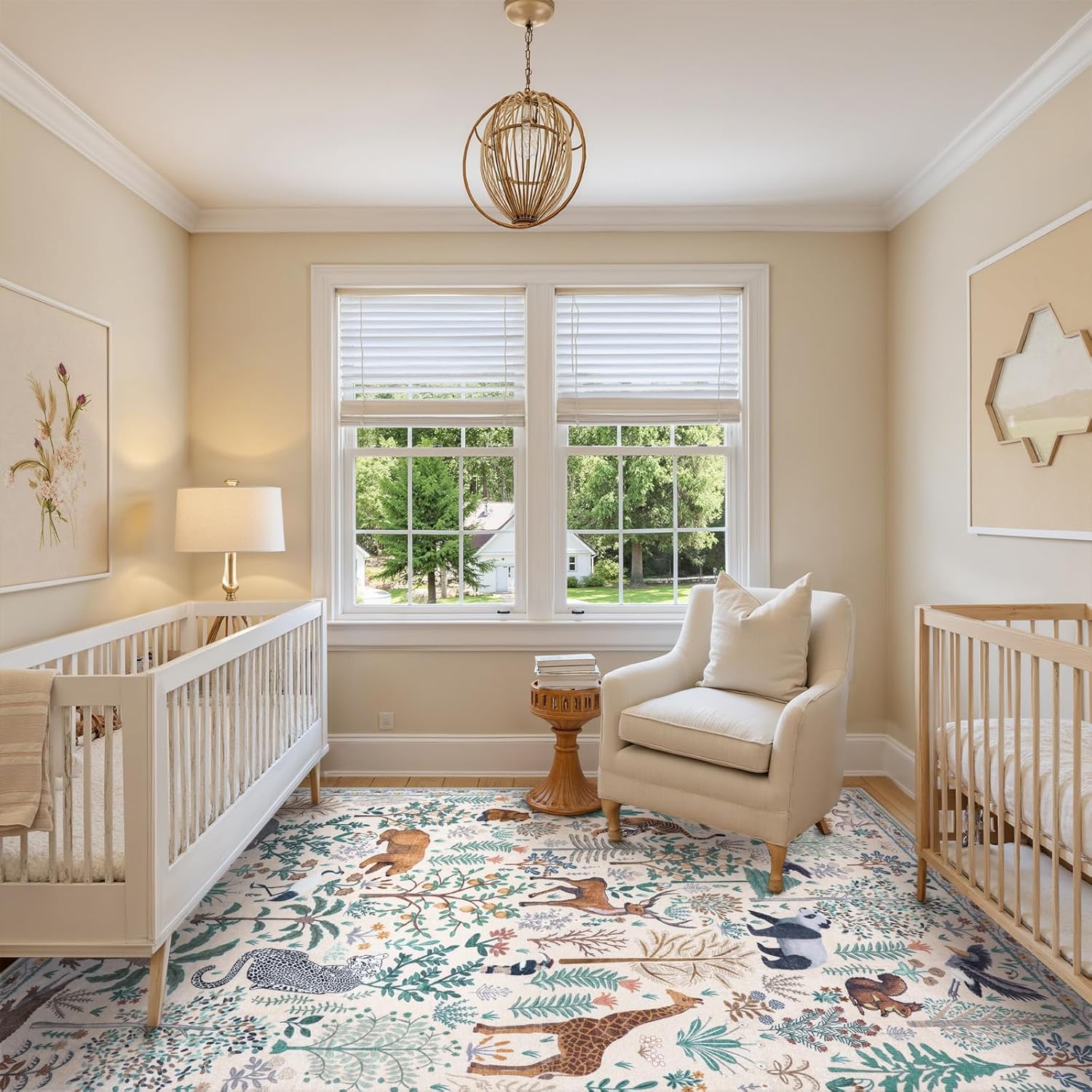 - Unique & Functional: This dining room rug features a delightful assortment of animals - tigers, pandas, giraffes, elephants, and more - surrounded by tropical flora. The best choice for your living room, kitchen, entryway, bedroom, home office, dining room, kids' playroom, nursery, dorm, kids' room or more