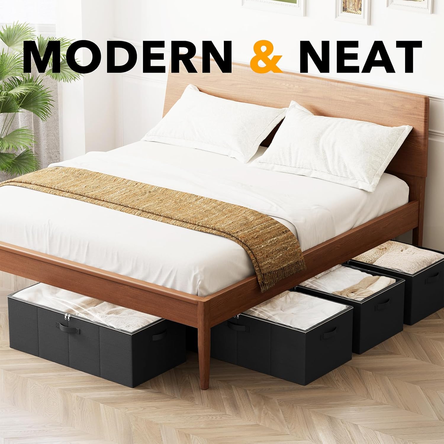 - 4 PACK BLACK UNDER BED STORAGE - Make your underbed space neat and organized with this storage bin organizer; Each Bin SIZE: 31.5"L x 15.8"W x 10"H