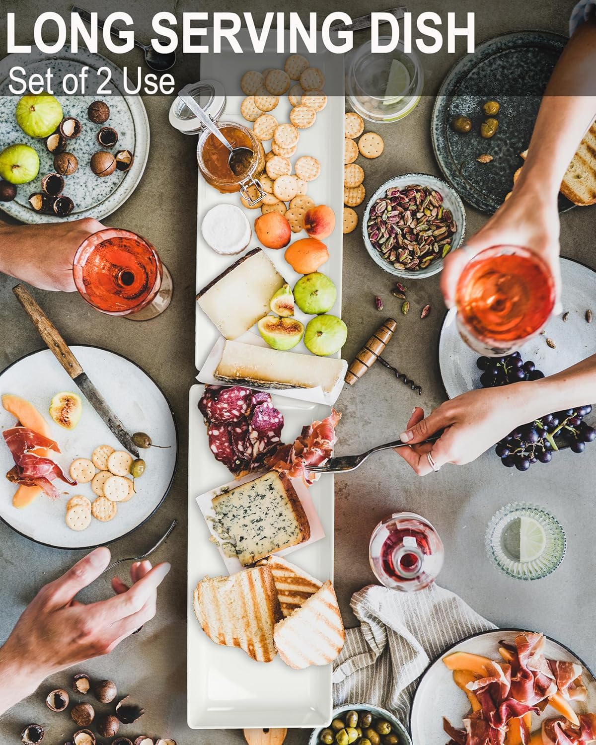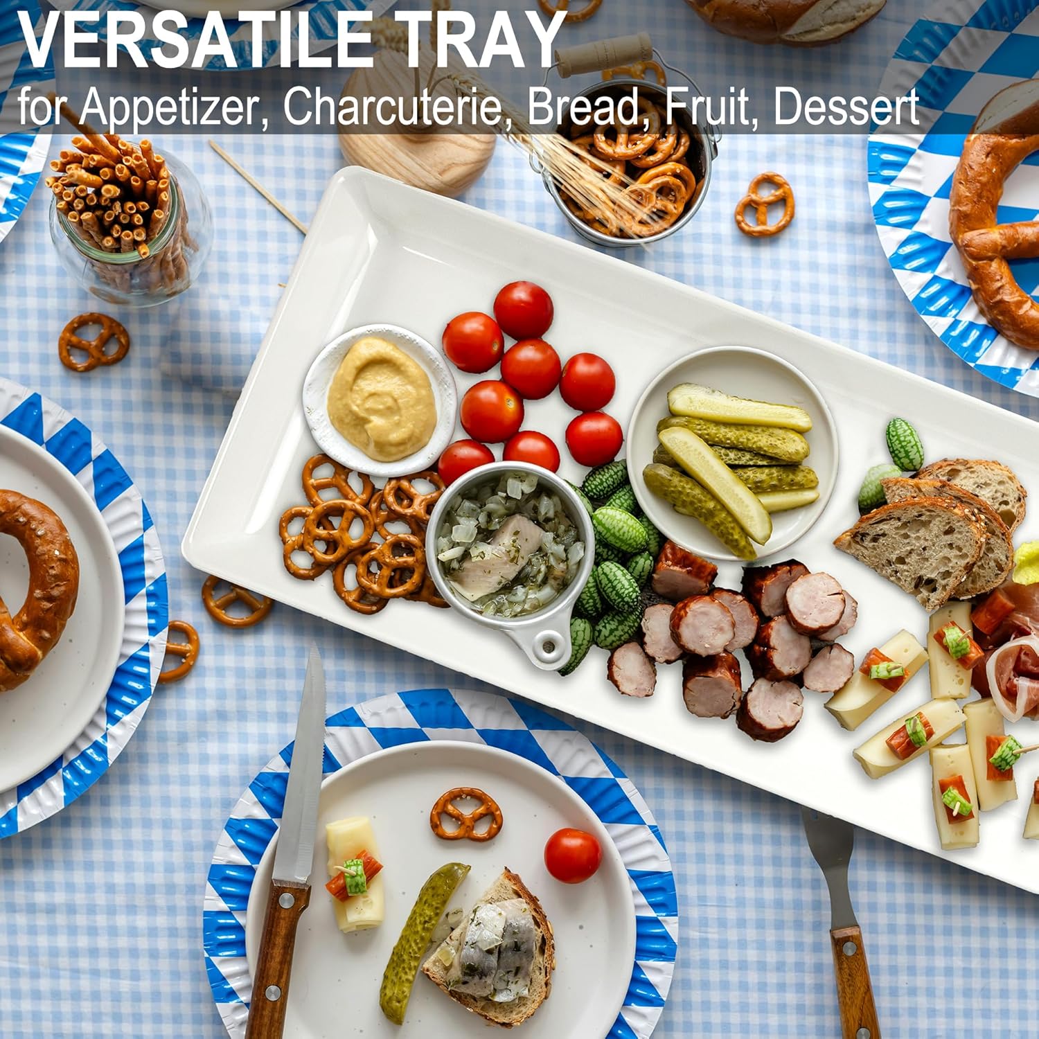 Long Melemine Serving Tray, 17.3x8x1.5 in Serving Platters and Trays for Appetizer, Charcuterie, Bread, Fruit, Dessert, Set of 2, White