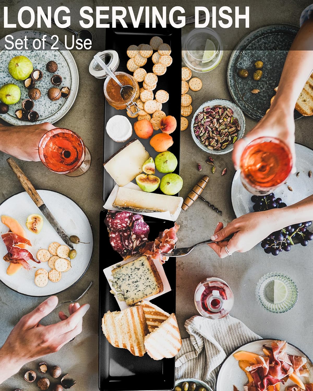 - Quantity - 2 Set. Size: 17.3 inch x 8 inch x 1.5 inch this set of long platters are perfect to meet lots of needs to prepare and serve food on dinner parties