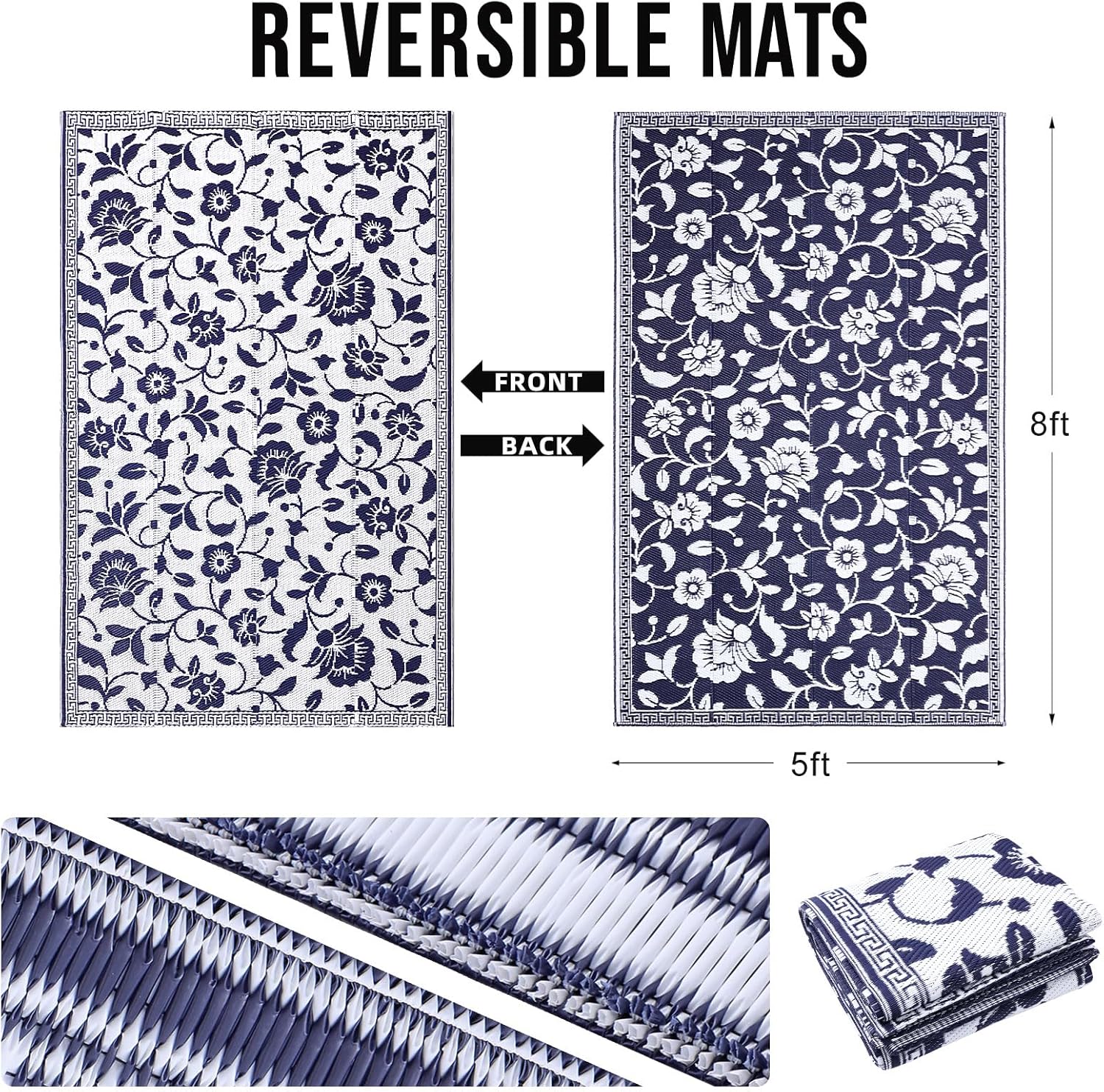 - Floral Aesthetic: Make a statement in your outdoor living space with this reversible patio rug, featuring a unique floral pattern. This plastic rug not only enhances the look of your area, but also creates an inviting atmosphere, transforming your space with both style and personality.