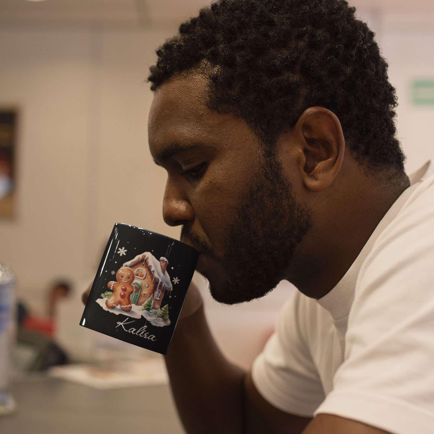 - π UNIQUE DESIGN MUG: Celebrate the magic of Christmas with this "Personalized Christmas Gingerbread Black Cup" showcasing a delightful gingerbread house design. Click "Customize Now" to add a name, creating a special holiday gift for friends and family. Ideal for sipping hot cocoa or coffee during the winter season.