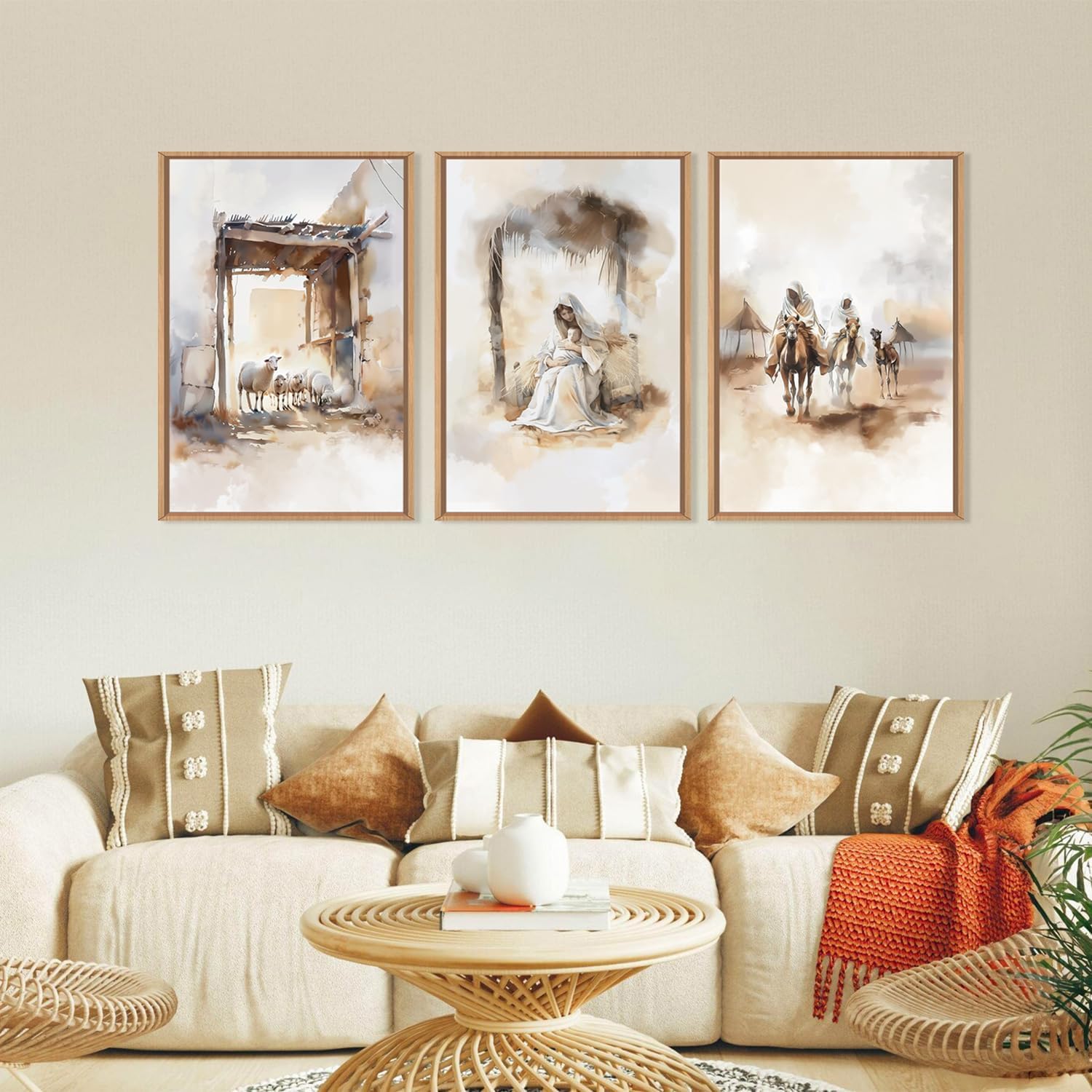 - 【Jesus Christian Catholic Wall Art】 The Size of the Christian framed canvas wall art set is: 16x24 inchx3pcs (40x60cmx3pcs). Vintage Jesus Poster Prints artwork use high-quality environmentally friendly ink and high-quality canvas, and use the industry's top printers for layered spraying, the colors are delicate and the transition is natural.bring you visual enjoyment.