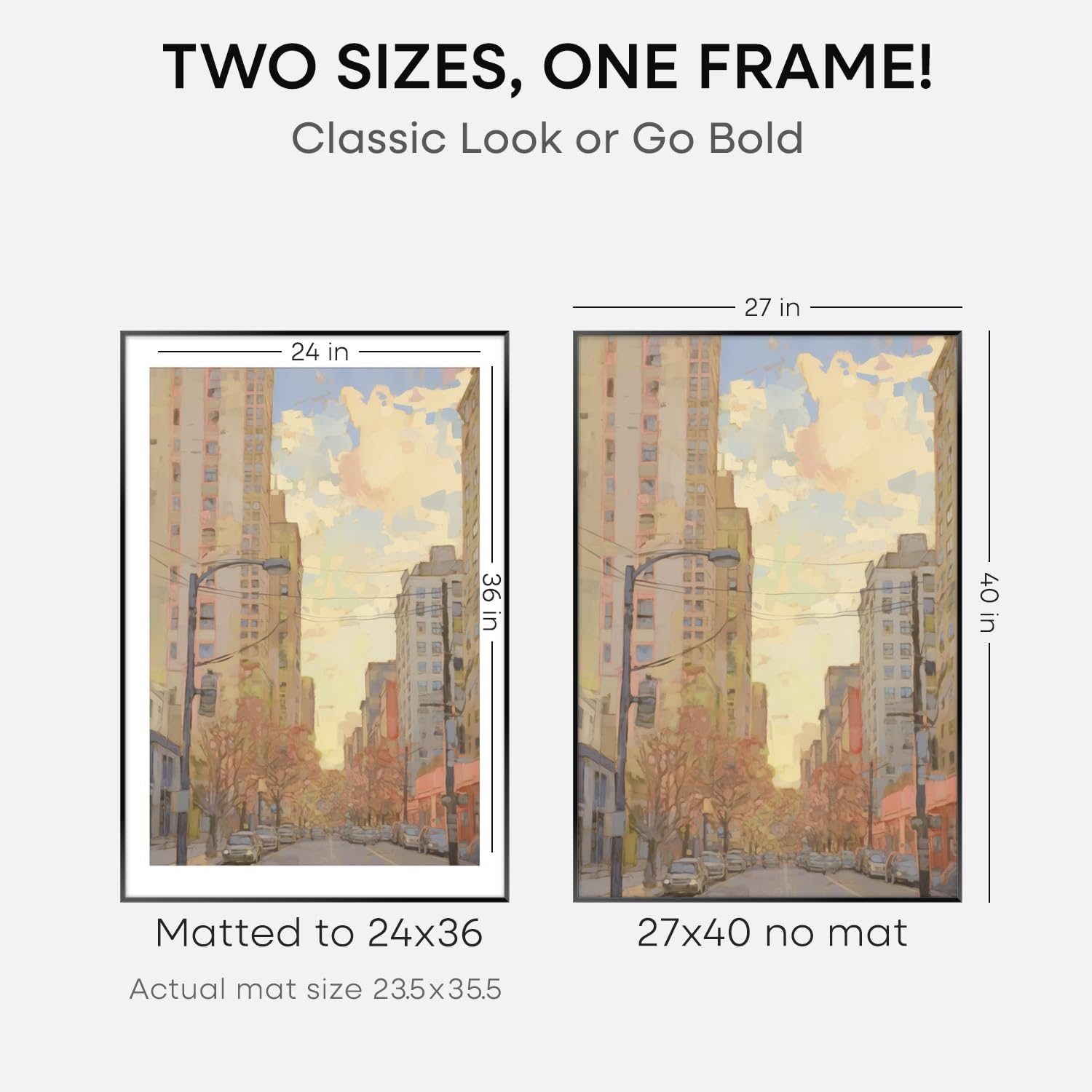Homeforia 27x40 inch Poster Frame Black, High End Metal 27 x 40 Large Movie Picture Frames with Mat 24 by 36 in Photo, 27x40 Thin Frame Matted to 24x36, 40x27 Frame, Tempered Glass, Wall Kit, Set of 1