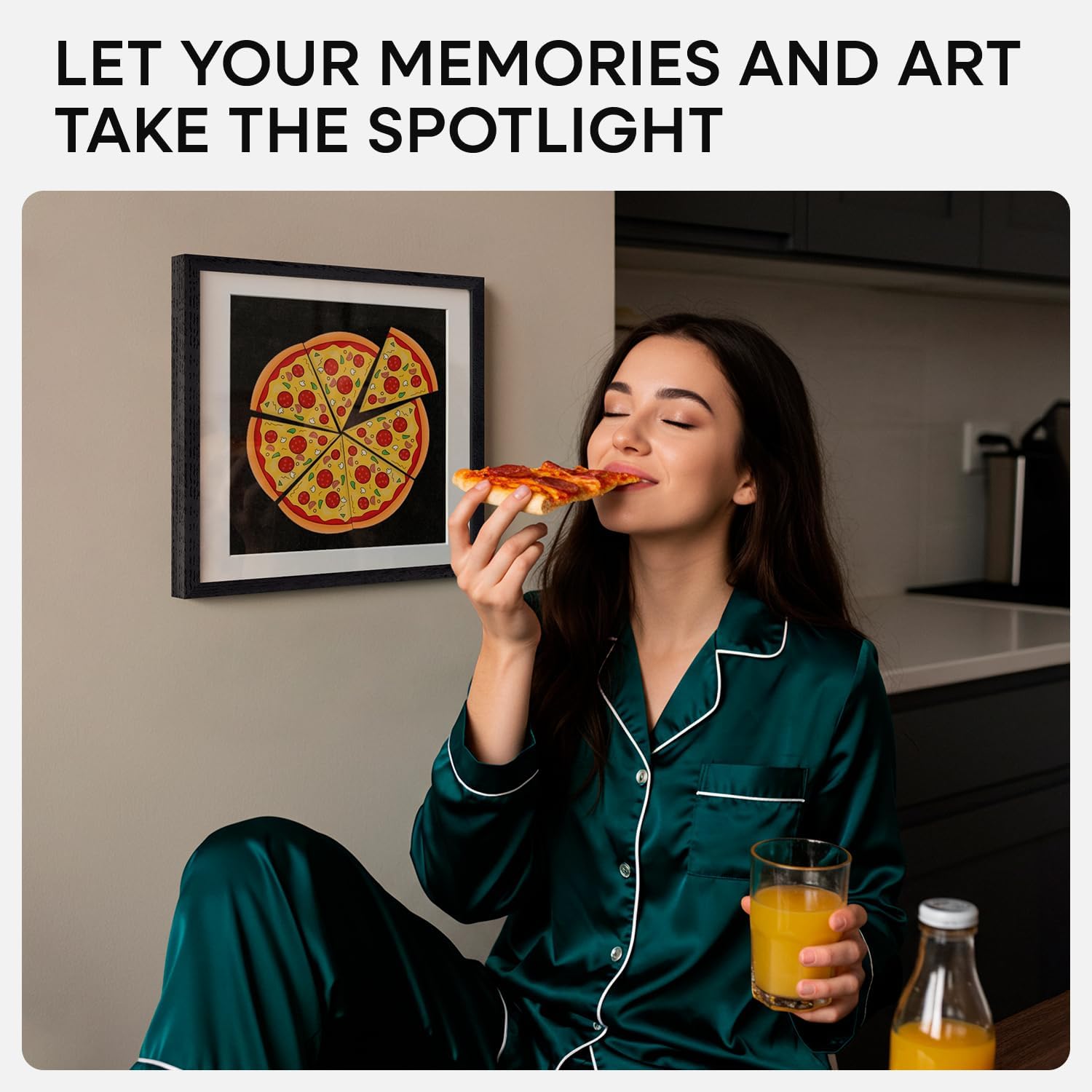 - MATTED OR EDGE-TO-EDGE—YOUR CALL. A crisp 9x9 white mat creates negative space, elevating your image with gallery precision. Or remove it for 11x11 bold, uninterrupted impact.