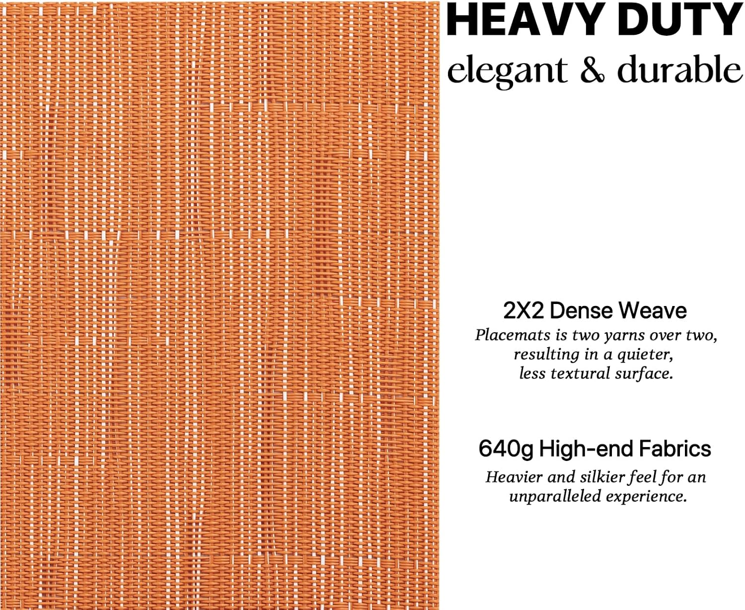 LEXMORE Placemats Set of 12 Vinyl/Plastic Woven Place Mats for Kitchen Table Indoor/Outdoor Washable Placemat Wipeable Dining Table Mats(Orange)