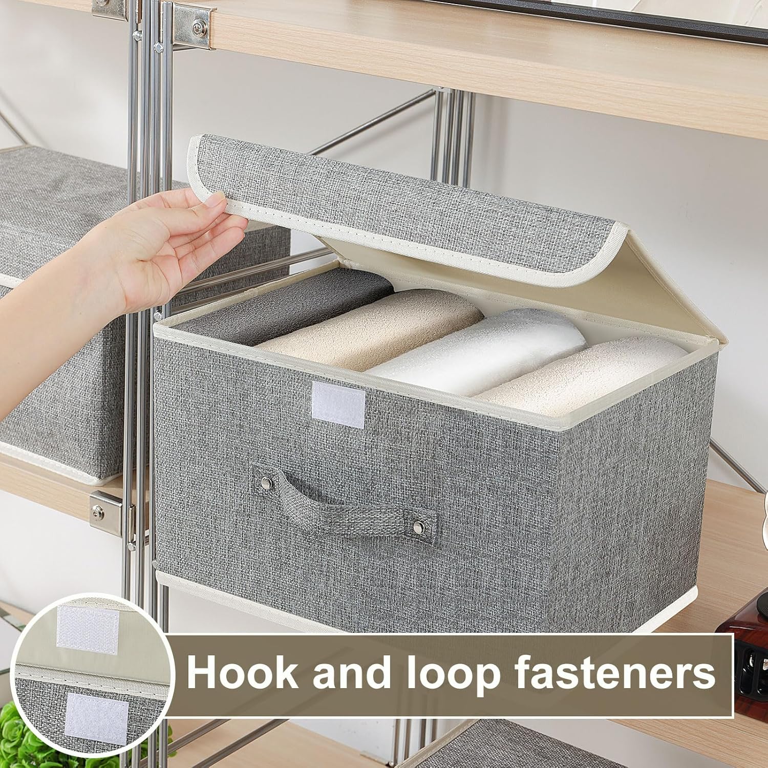 - Flip Storage Bins:13.0x 9.1 x 7.9 inches,the cloth storage bin can store more items,just one cloth storage box can contain 1 blanket or 4 clothes or 8 T-shirts or 6 towels, convenient and practical