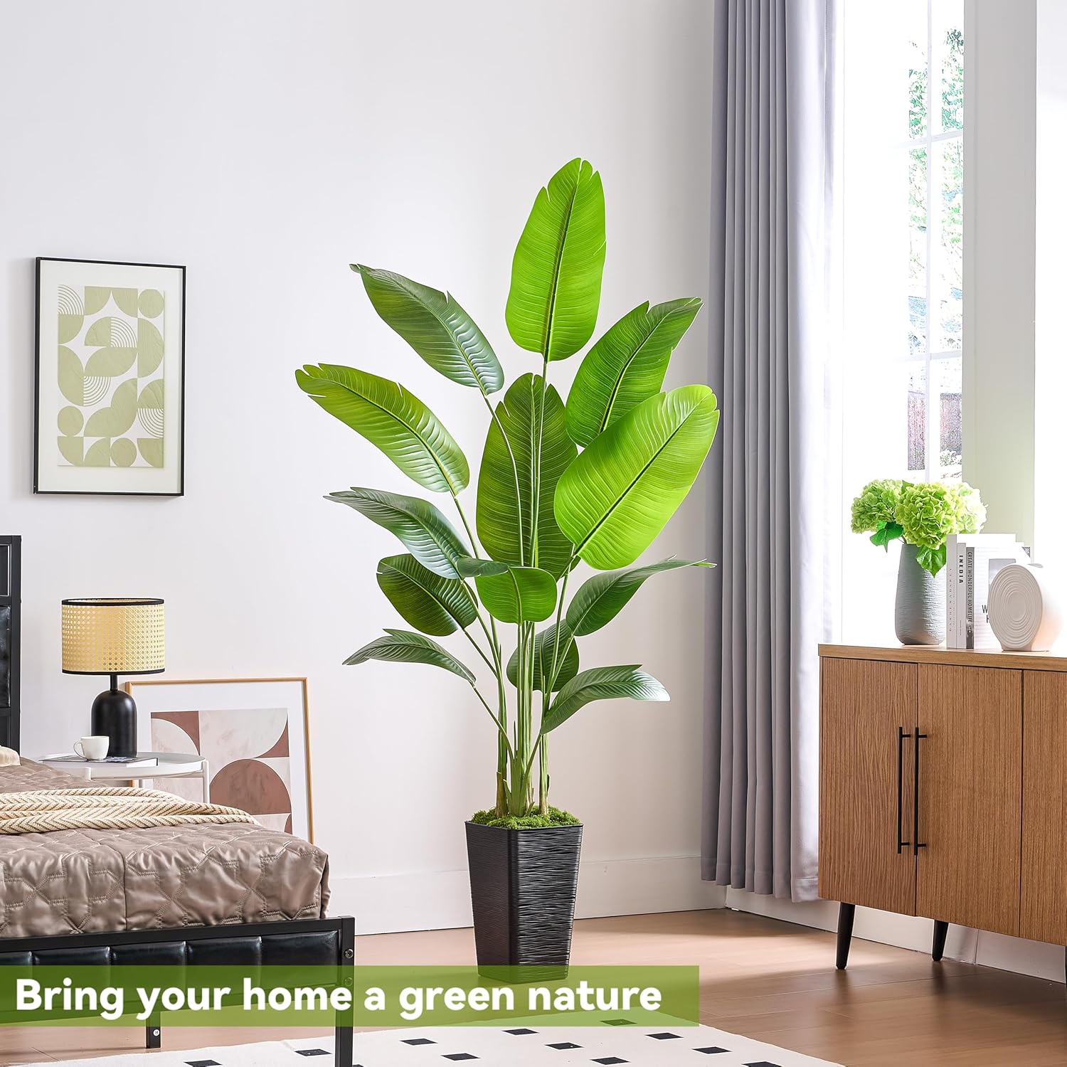 • Realistic Faux Tropical Plants: Do you want some green to light and refresh your home? This artificial tree will solve your problem! Elegant Artificial Bird of Paradise tree Adopting an integrated tree stem structure with textured root design and 3D printed realistic leaves, creating a natural plant shape that brings you closer to nature. Suitable for capturing the appearance and feeling of lovely tropical palm trees anywhere. Artificial tree is ecologically friendly and green all year round.
