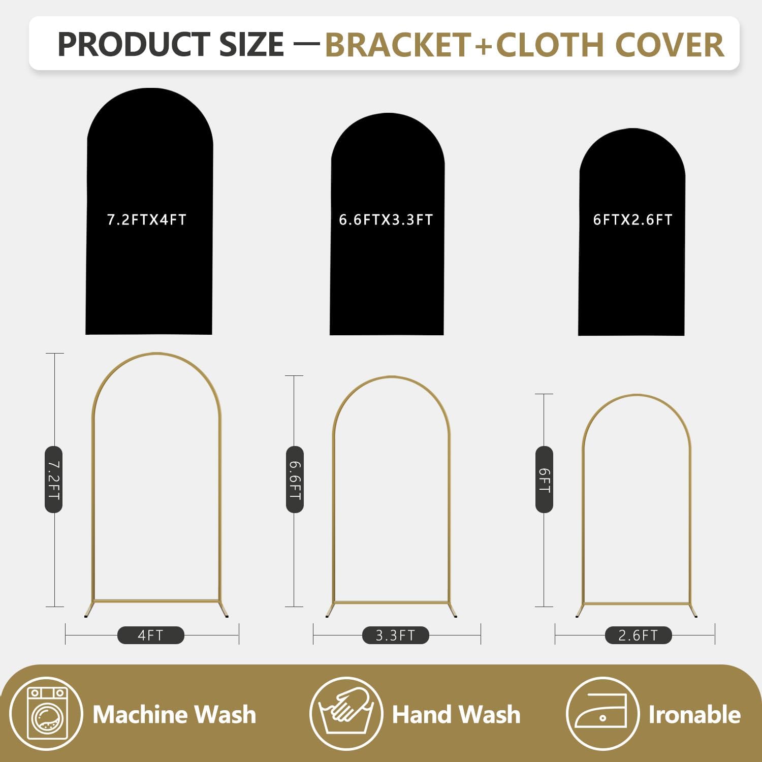 Arch Backdrop Stand and Cover Set, 3 Metal Balloon Arch Backdrop 7.2ft 6.6ft 6ft, Gold Arched Stand Frame for Wedding, Parties,Birthday, Backdrop Decorations (Black,7.2ft+6.6ft+6ft)