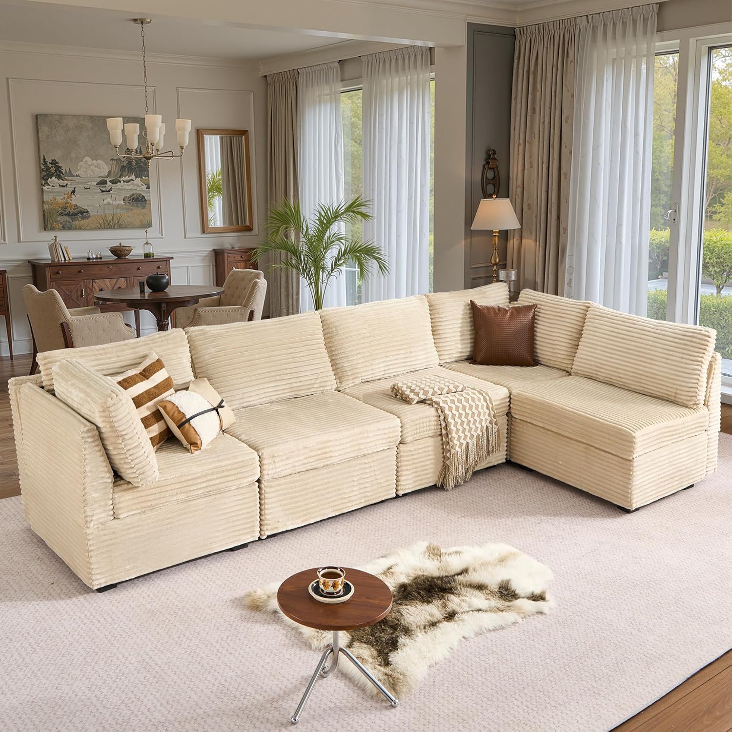 ovios Sectional Sofa Couch with L-Shape Chaise Oversized, Comfy Modular Cloud Couches with Deep Seat, Modern Upholstered Plush Corduroy Sofas Set for Living Room, 5-Seater, Beige
