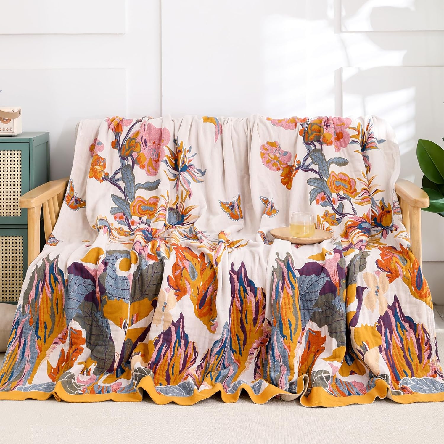 - WIDELY APPLICATION: Double-sided pattern color design, universal in all seasons, light and soft, giving you a warm and comfortable feeling. It can be used as a bedspread, sofa or chair blanket for sitting and lying down, or for outdoor picnics and camping.